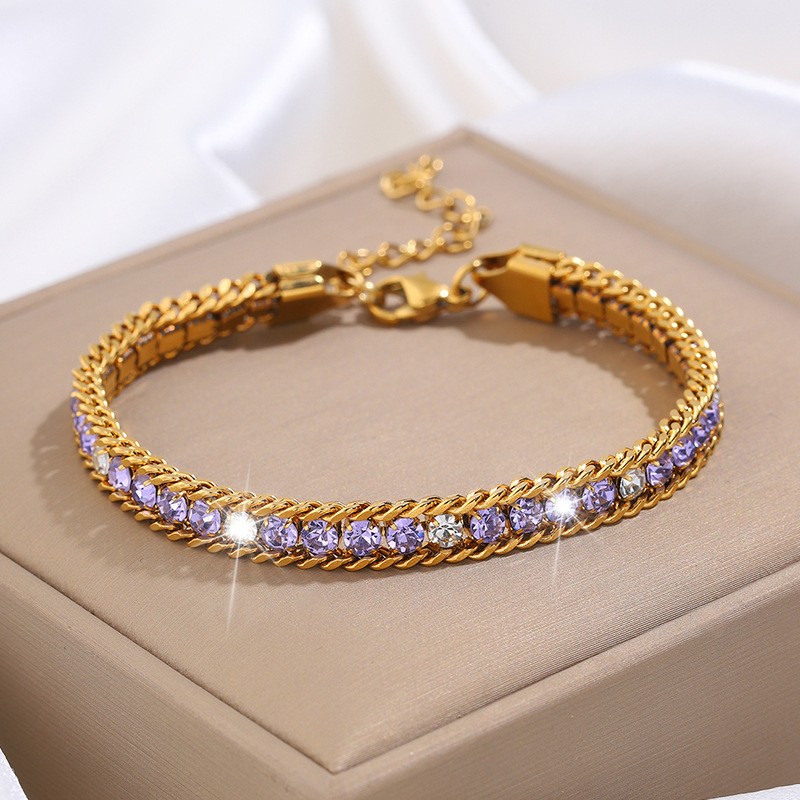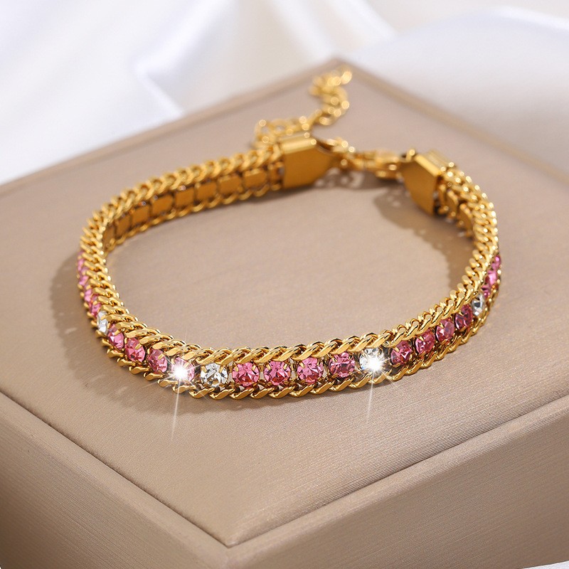 304 acciaio inox braccialetto, with cubico zircone, placcato color oro, gioielli di moda & per la donna & con strass, nessuno, Venduto da PC