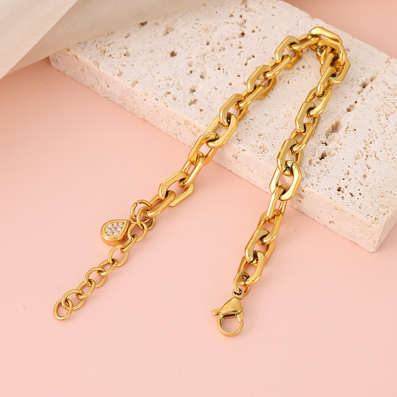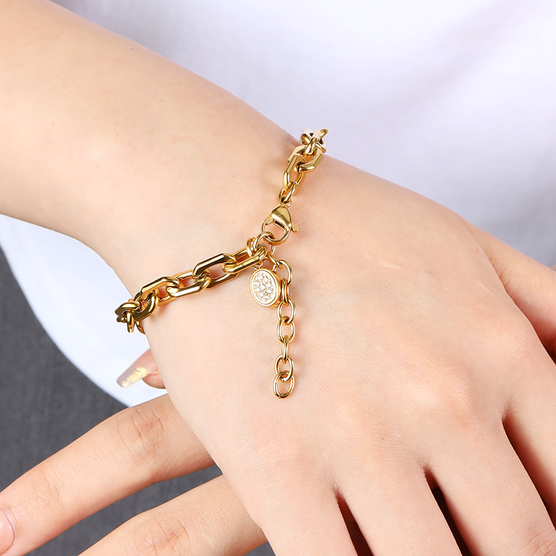 304 acciaio inox braccialetto, with 1.4inch extender chain, placcato color oro, unisex & stili diversi per la scelta & Micro spianare cubic zirconia, Lunghezza Appross. 6.9 pollice, Venduto da PC