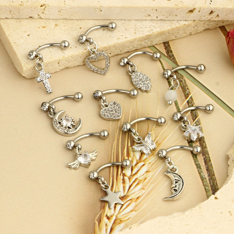 1:One cross2:one palm3:One solid heart-shaped4:Zircon moon one5:A butterfly6:Zircon five-pointed star one7:one bead8:Moon one9:Hollow heart one10:Love wings one11:A five-pointed star