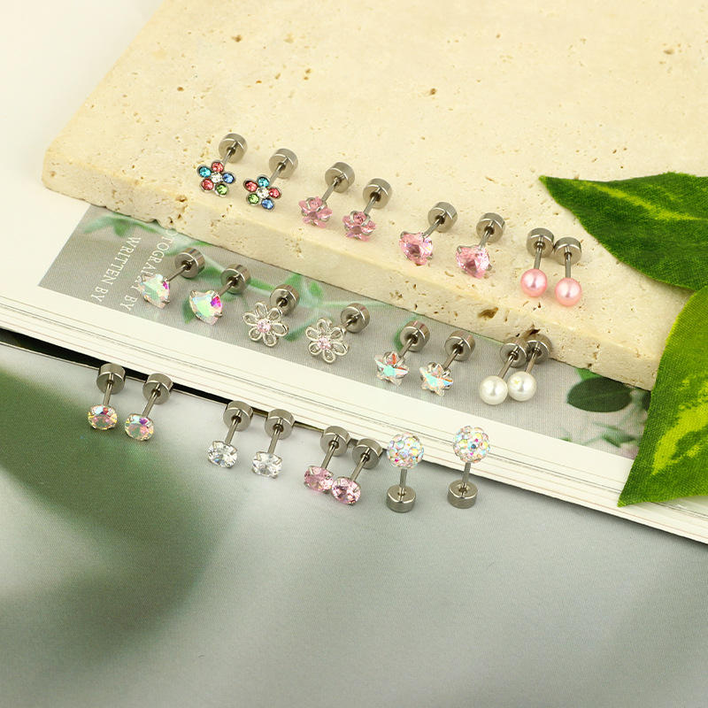 304 acciaio inox orecchino piercing, with perla in plastica, placcato color argento, unisex & Micro spianare cubic zirconia, 0.80x6x4mm, Venduto da set