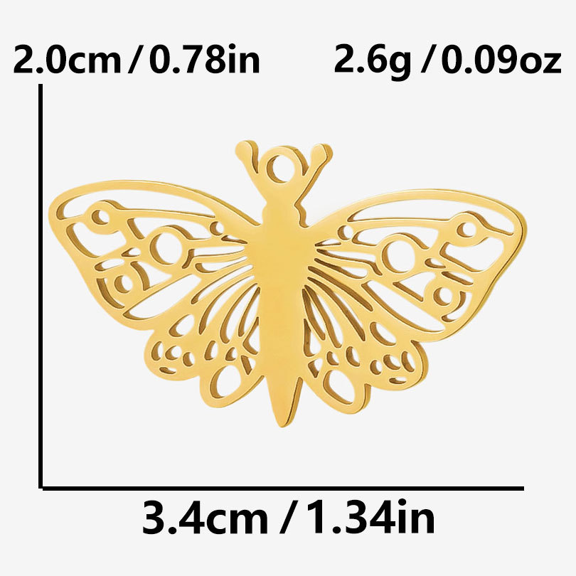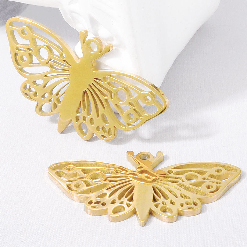304 acciaio inox pendente, Farfalla, placcato color oro, DIY & smalto, nessuno, assenza di nichel,piombo&cadmio, 10PC/borsa, Venduto da borsa