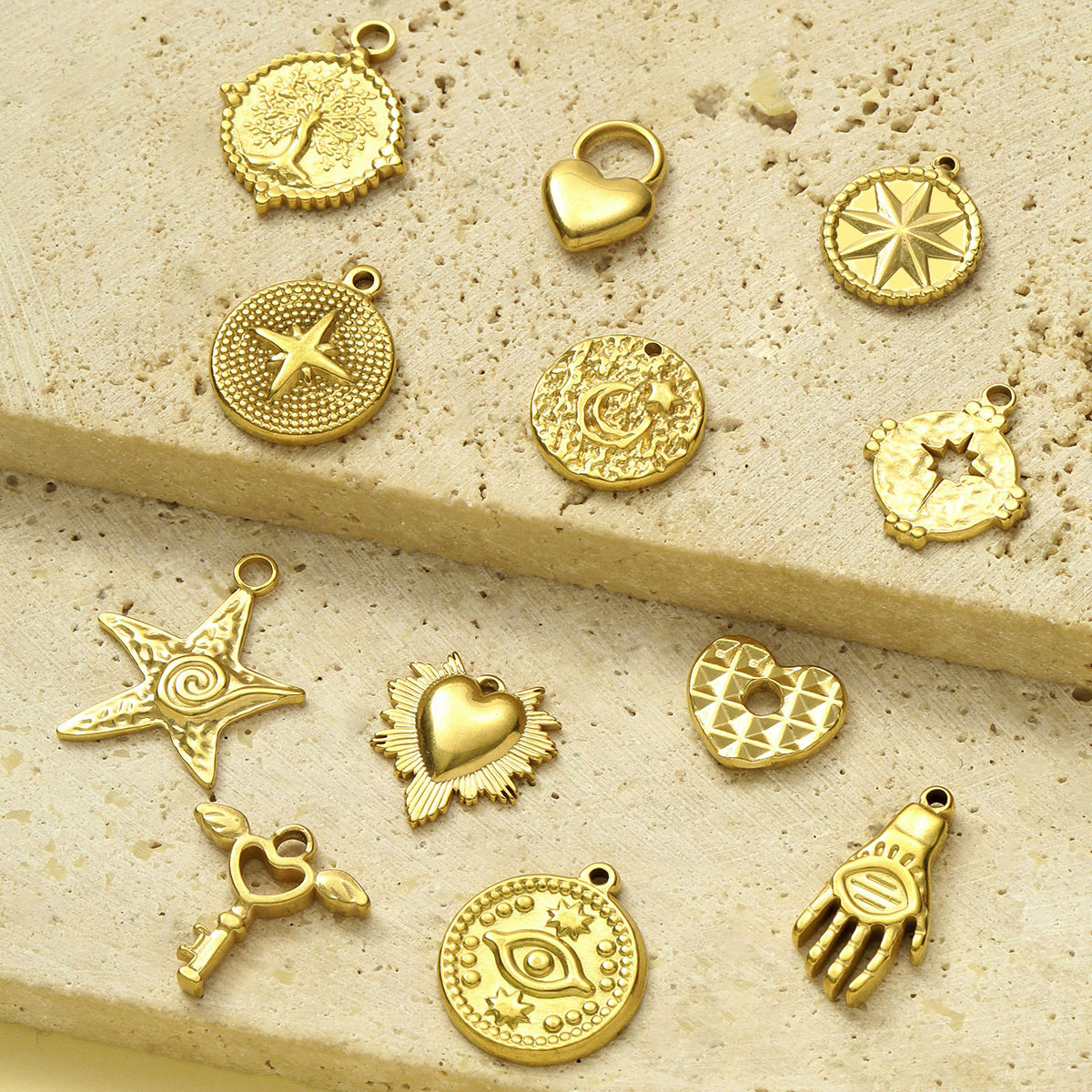 Titantium acciaio pendente, placcato color oro, DIY, dorato, 10PC/borsa, Venduto da borsa