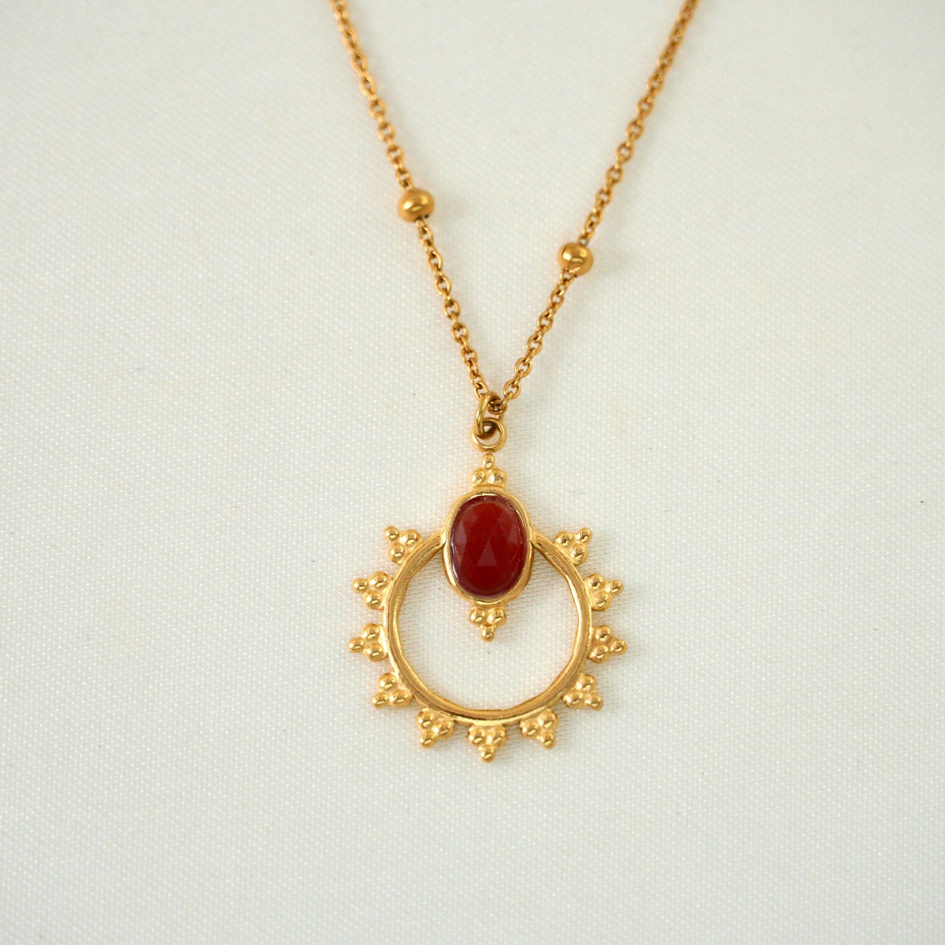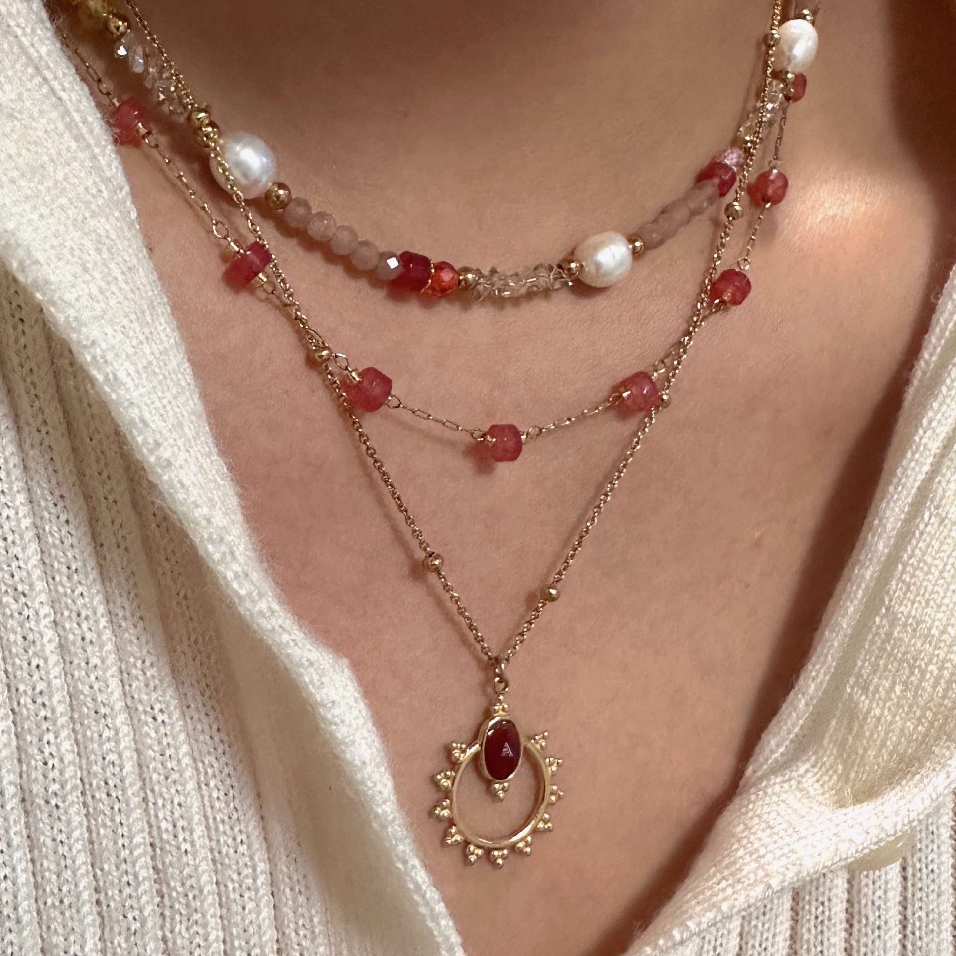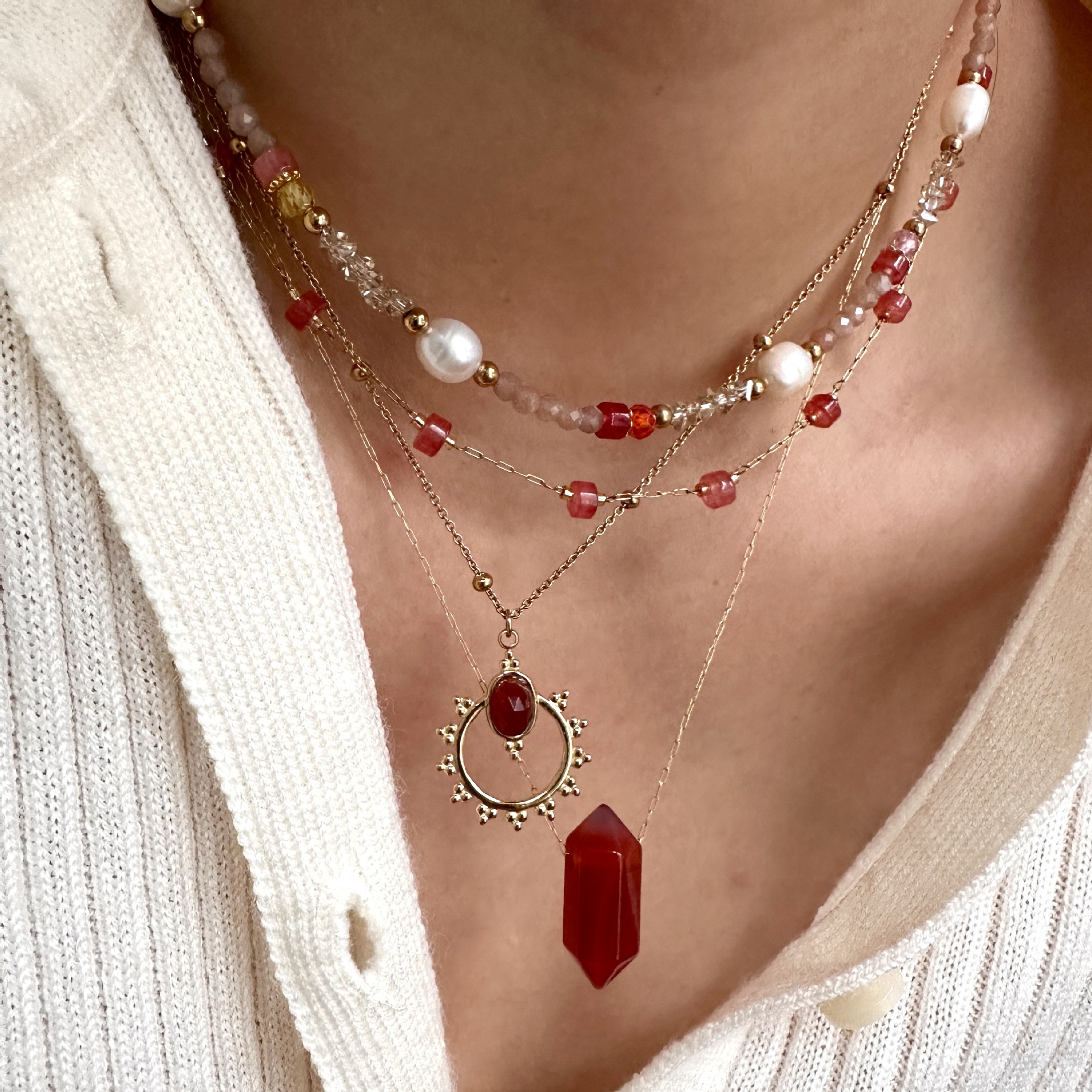 Titantium acciaio collana, with agata rossa & Strawberry Quartz, placcato color oro, stili diversi per la scelta & per la donna, Venduto da PC