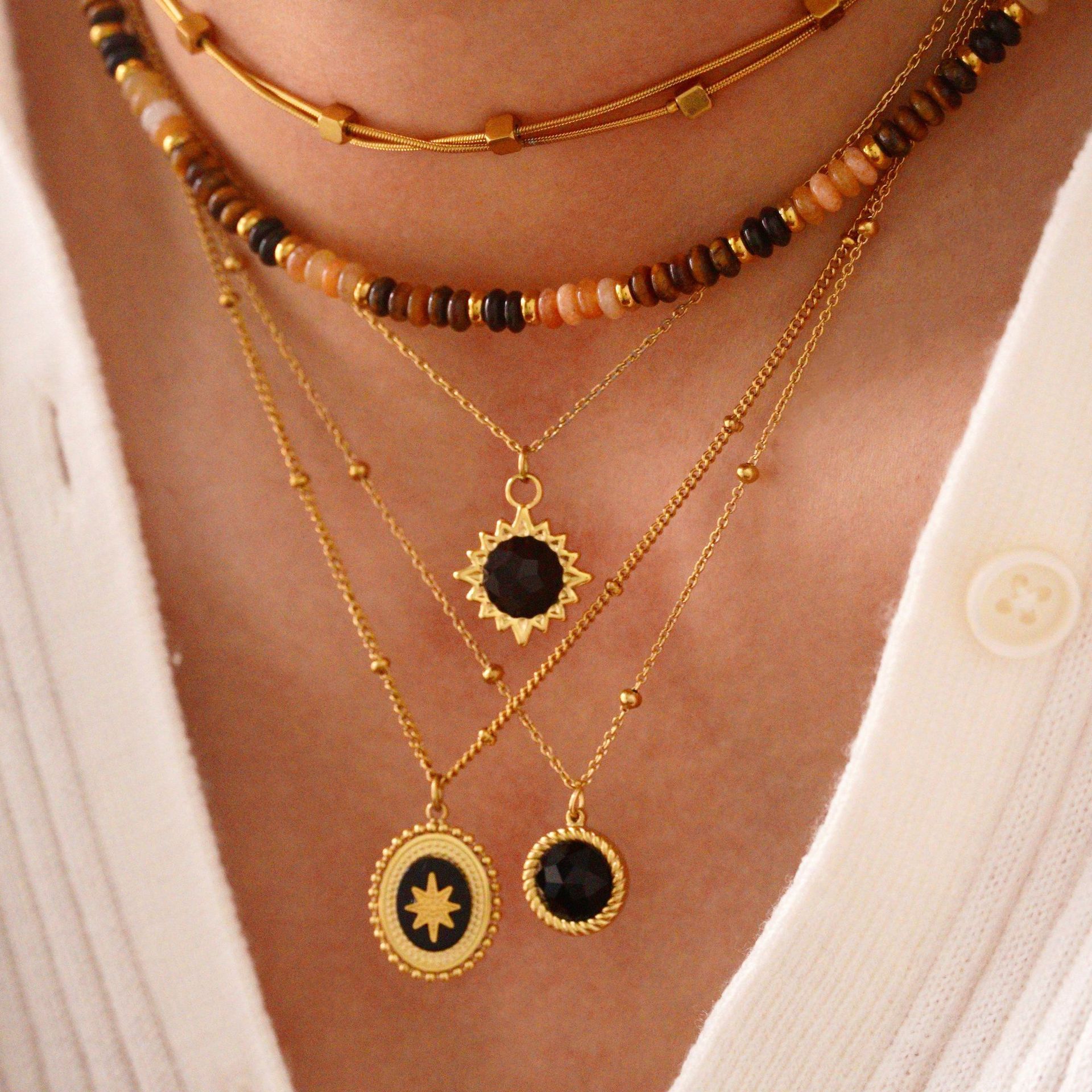 Titantium acciaio set di gioielli fashion, with Pietra naturale & agata nero, placcato color oro, stili diversi per la scelta & per la donna, Venduto da PC