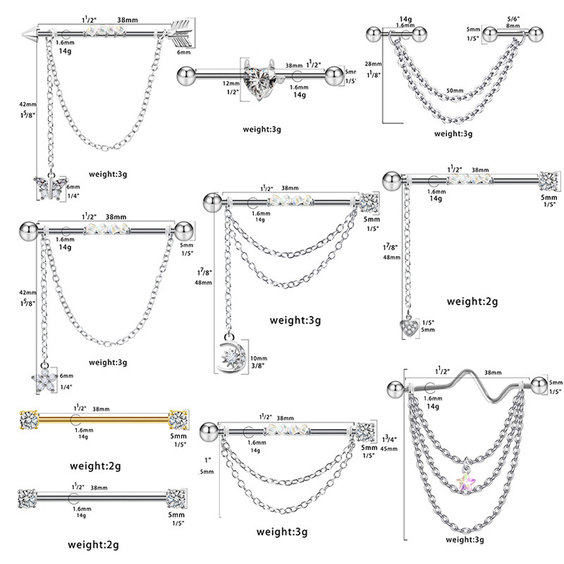 Titantium acciaio orecchino piercing, placcato, unisex & stili diversi per la scelta & con strass, Venduto da PC