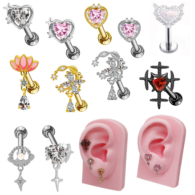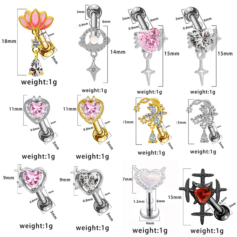 Titantium acciaio orecchino piercing, placcato, unisex & stili diversi per la scelta & Micro spianare cubic zirconia, Venduto da PC
