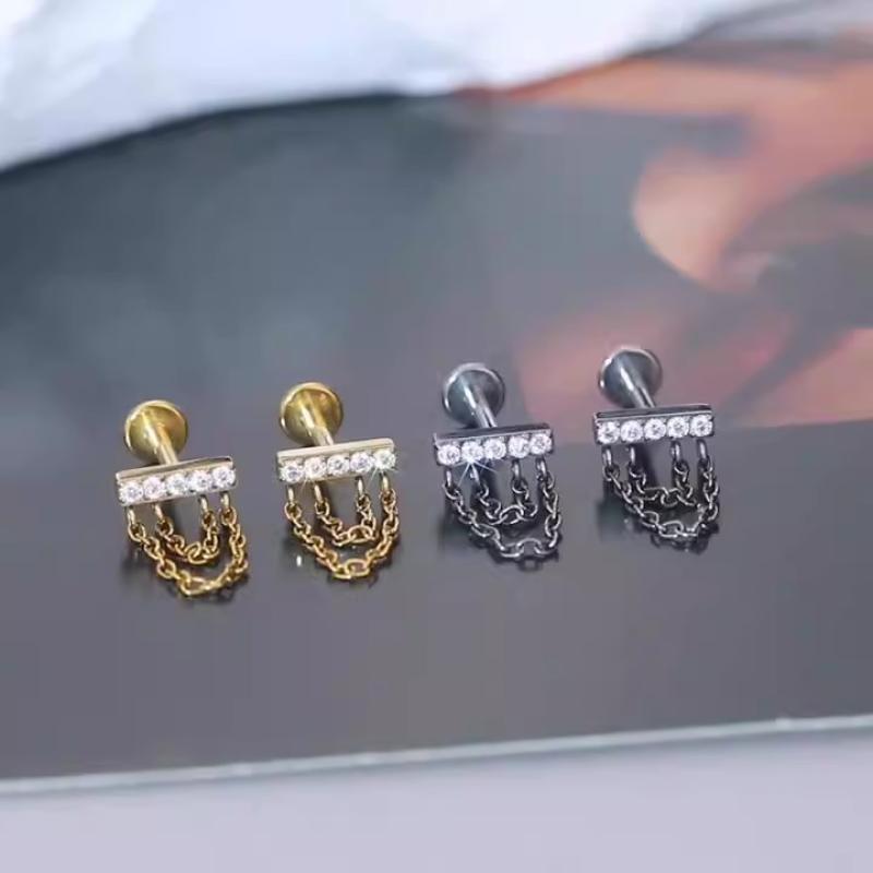 Lega di titanio orecchino piercing, placcato, unisex & stili diversi per la scelta & Micro spianare cubic zirconia, 1.20x8mm, Venduto da PC