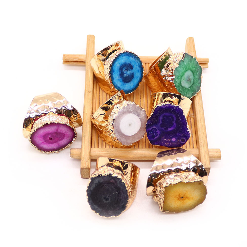 Anello da dito Agata, 304 acciaio inox, with agate, placcato color oro, gioielli di moda, nessuno, 24x30mm, Venduto da PC