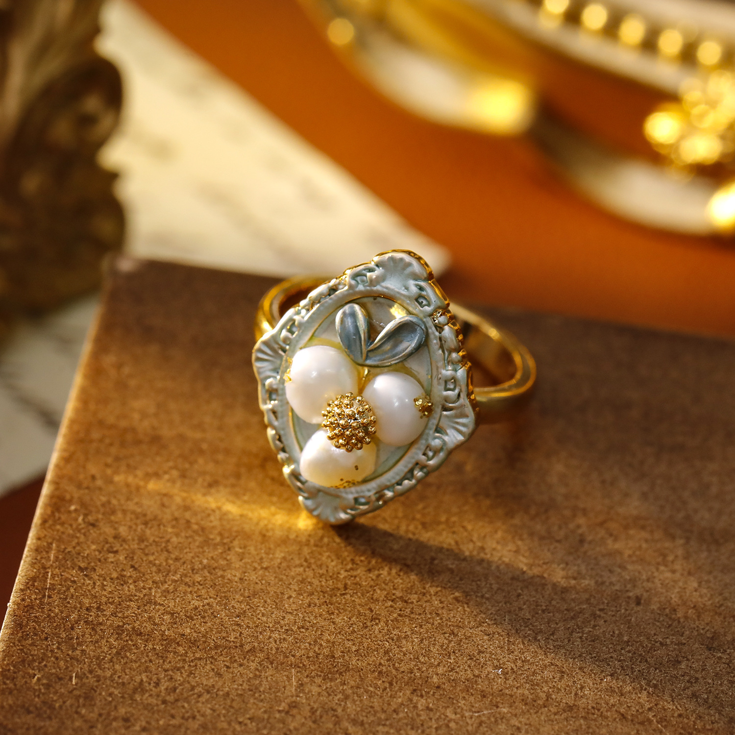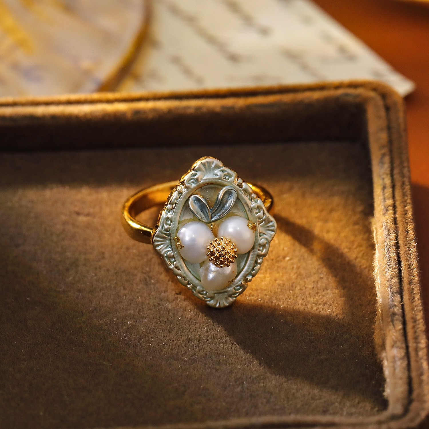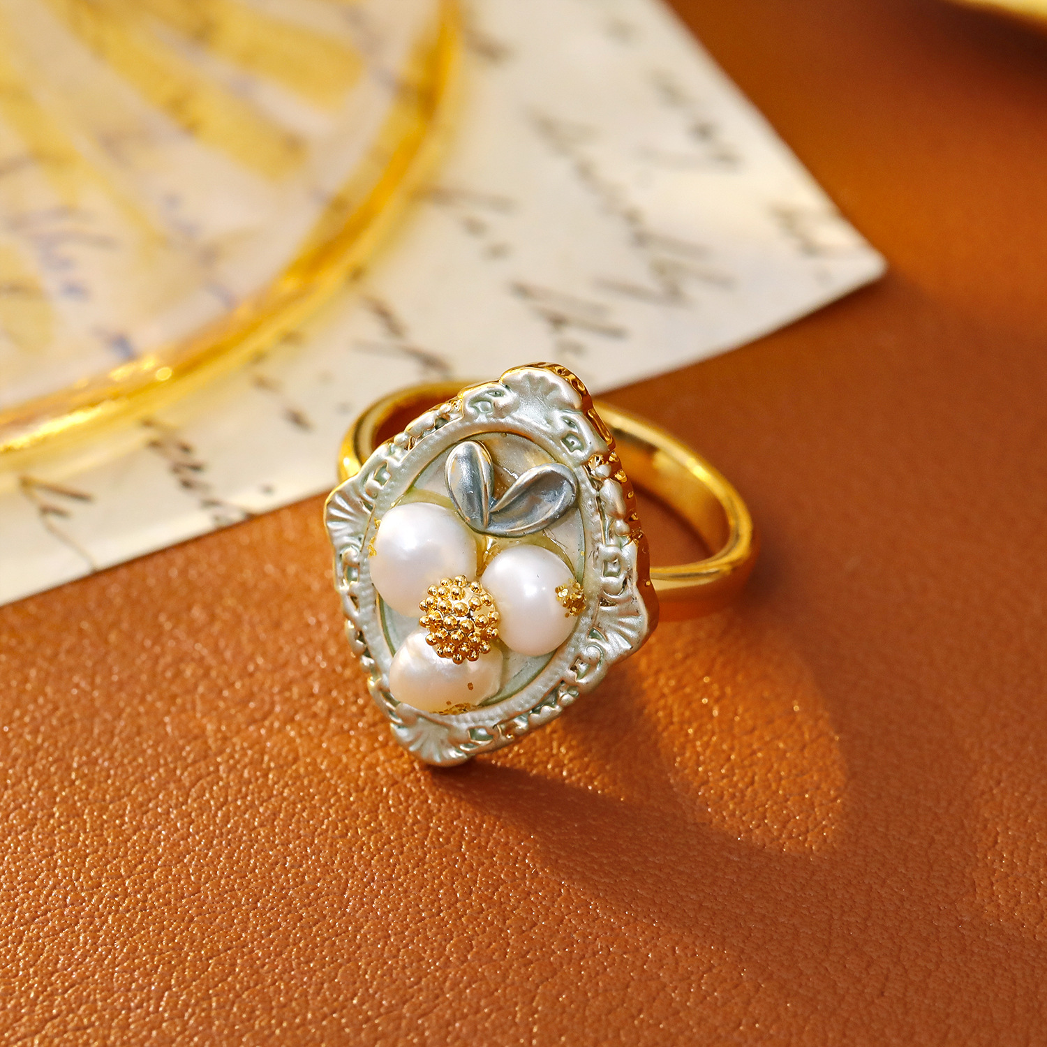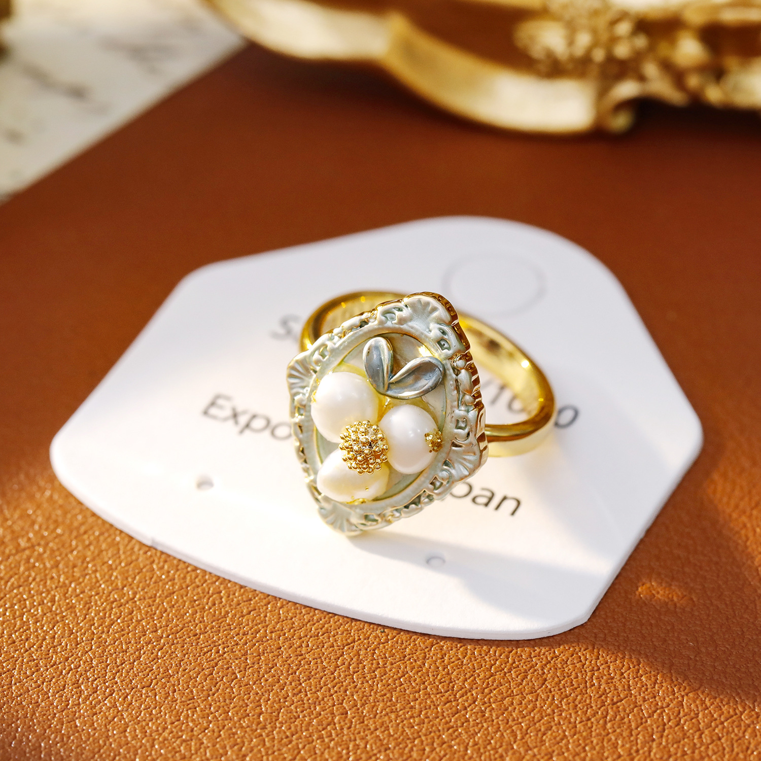 Anello da dito con perla d'acquadolce, ottone, with perla d'acquadolce coltivata naturalmente, pittura, gioielli di moda & per la donna, dorato, The inner diameter of the open ring can be fine-tuned to 18mm, and the pearl diameter is 4-5mm, Venduto da PC
