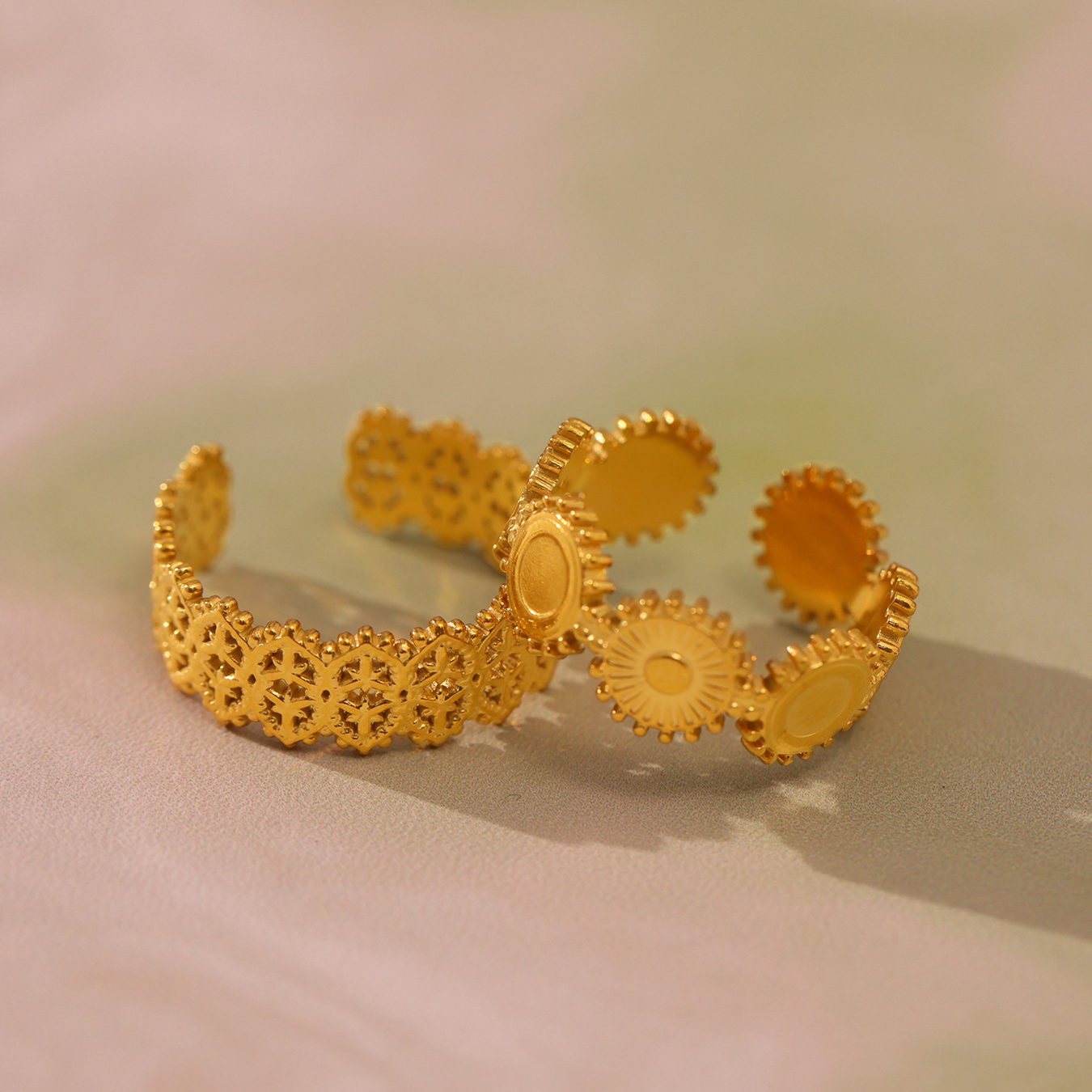 Anello in acciaio inox, 304 acciaio inox, placcato, stili diversi per la scelta & per la donna & cavo, dorato, Misura:7, Venduto da PC