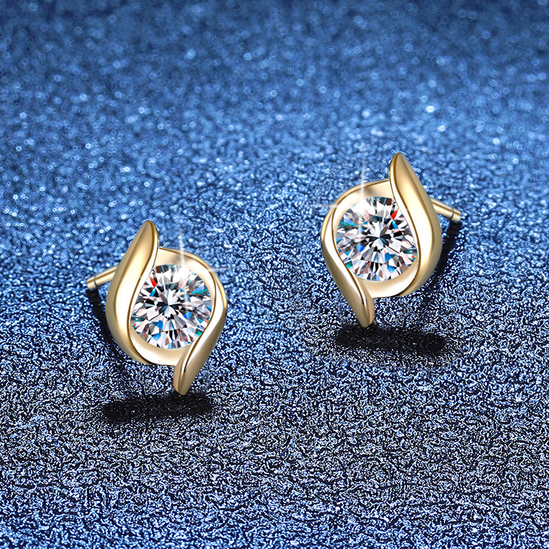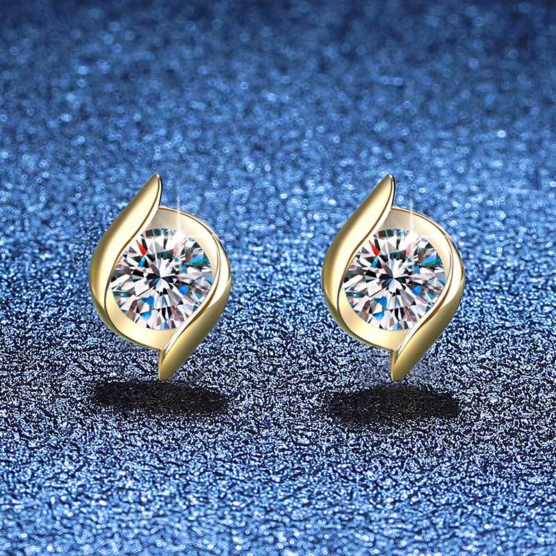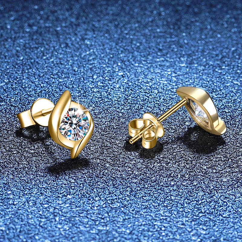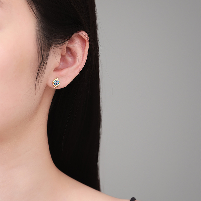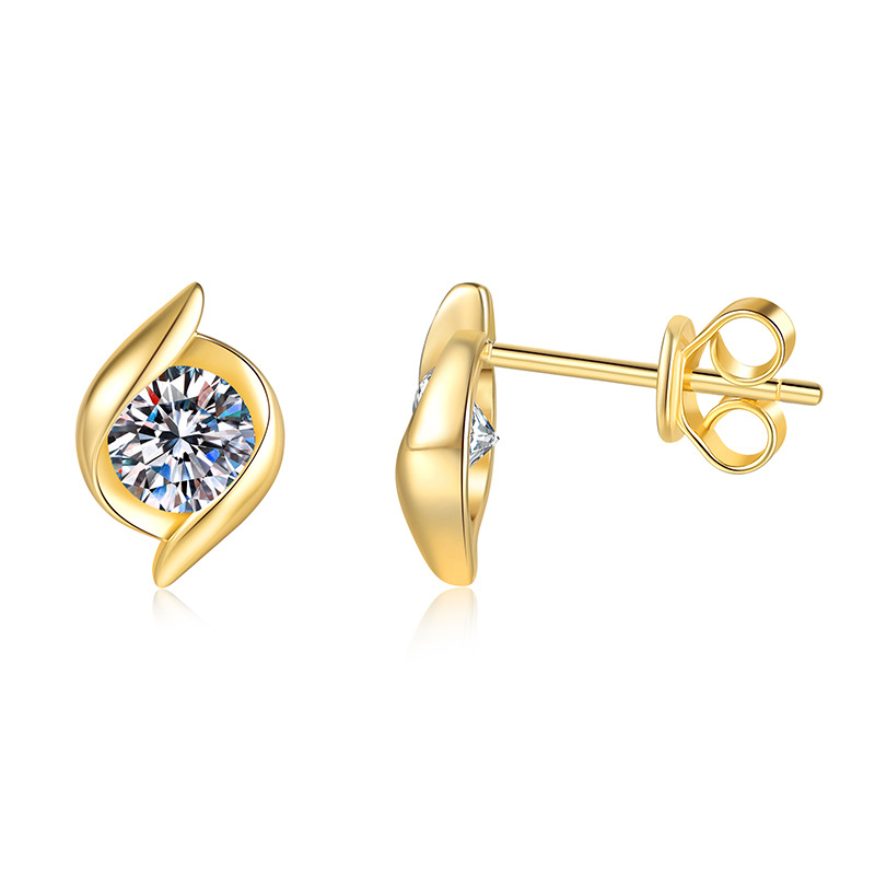 925 sterline d'argento orecchini a borchia, with Moissanite, placcato color oro, gioielli di moda & per la donna, 7x10mm, Venduto da coppia