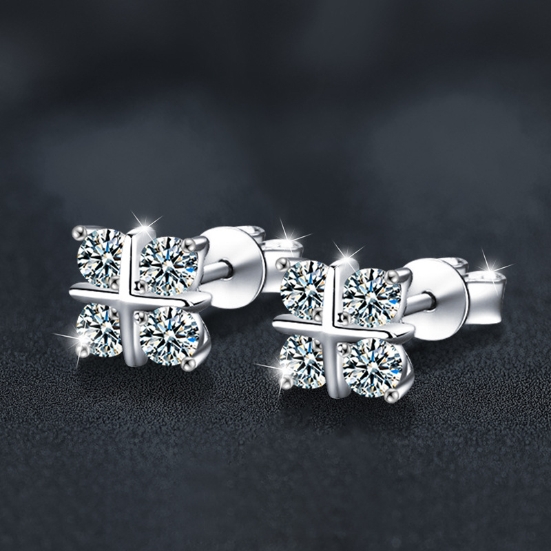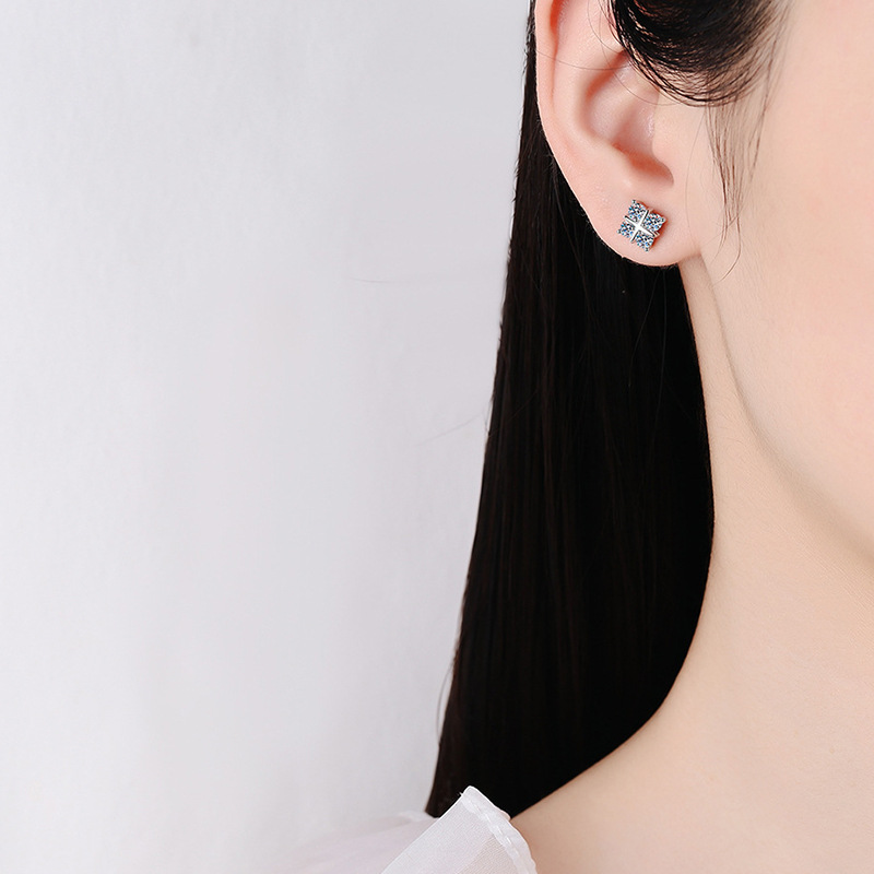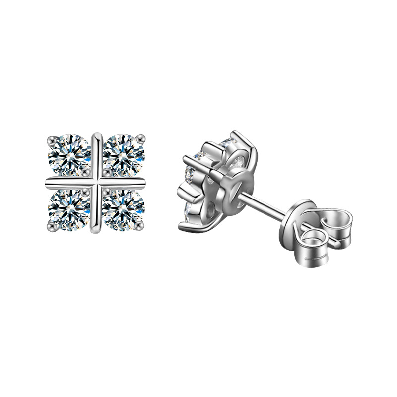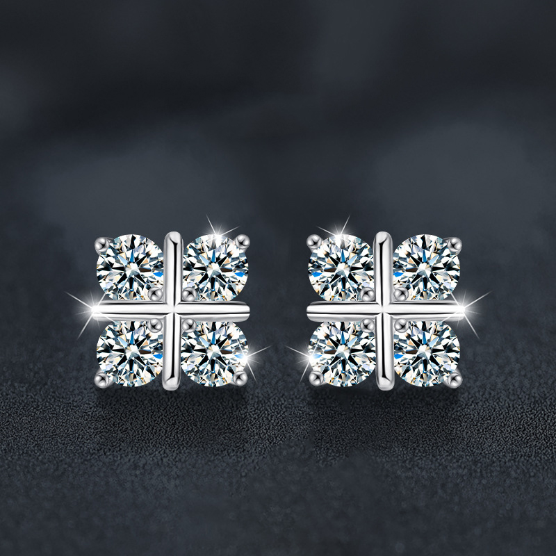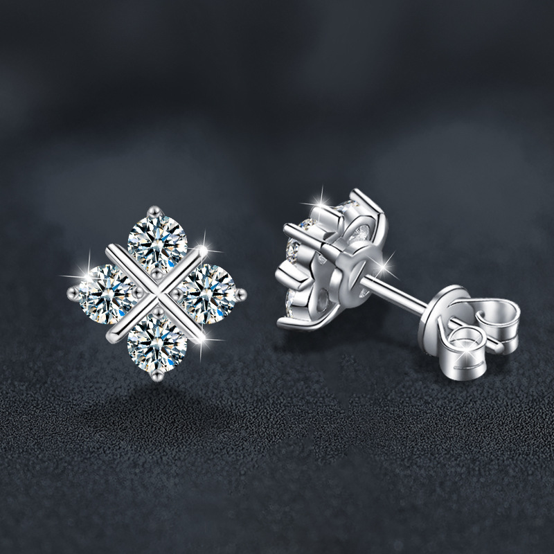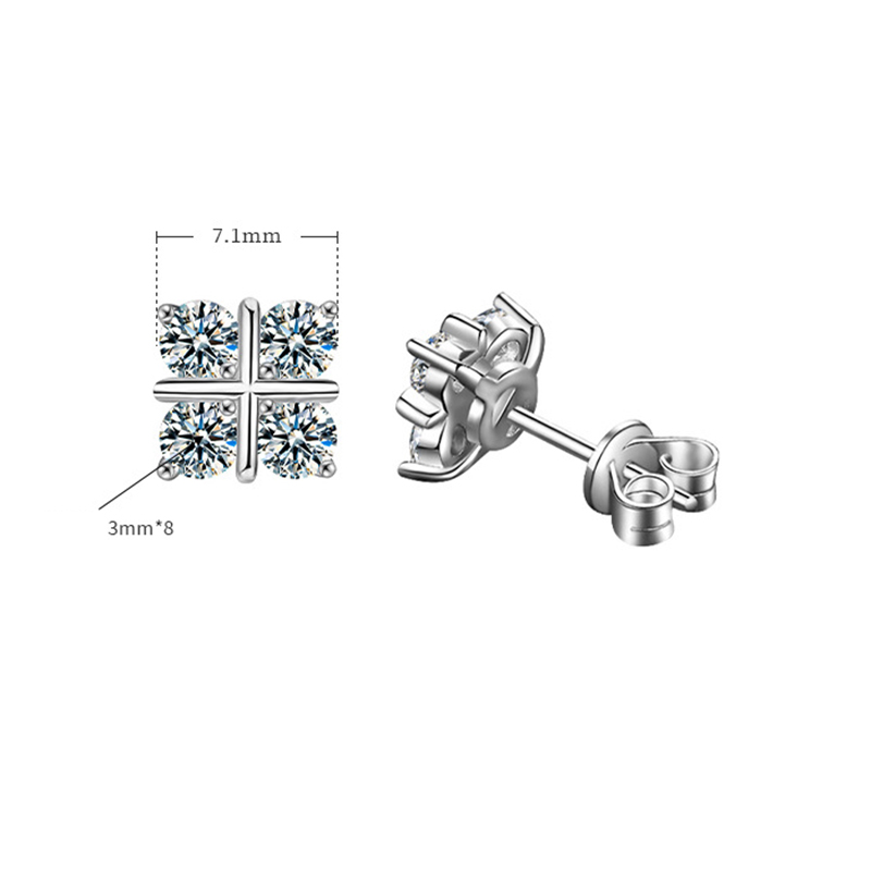 925 sterline d'argento orecchini a borchia, with Moissanite, trifoglio quattro petali, gioielli di moda & per la donna, nessuno, 7.10mm, Venduto da coppia
