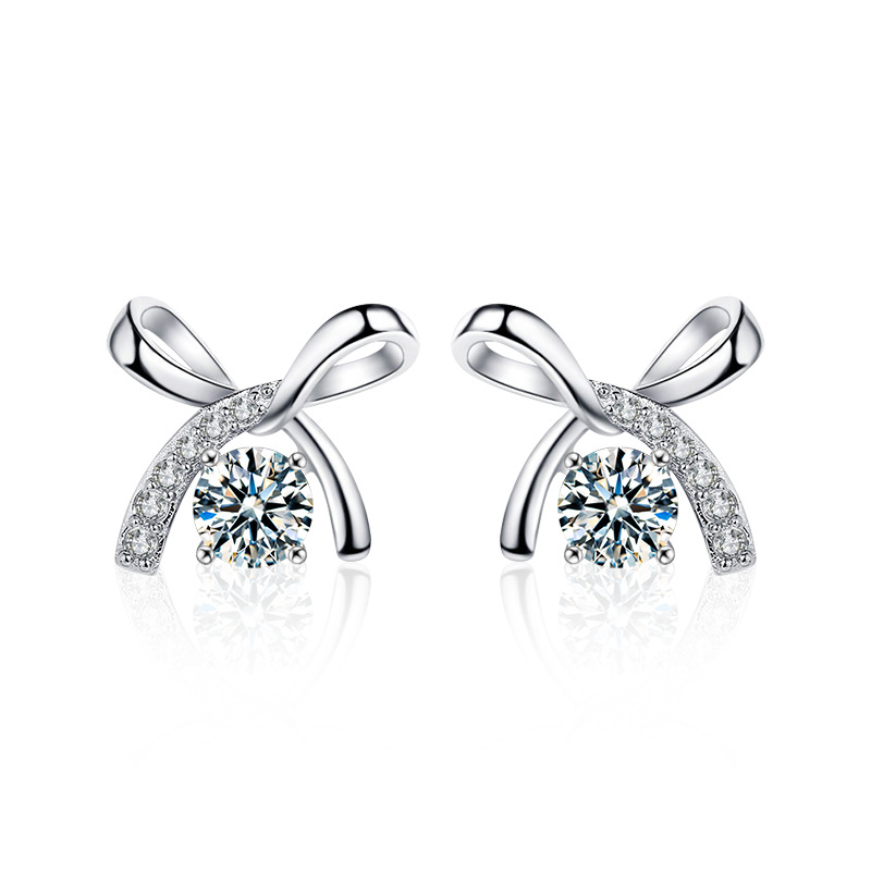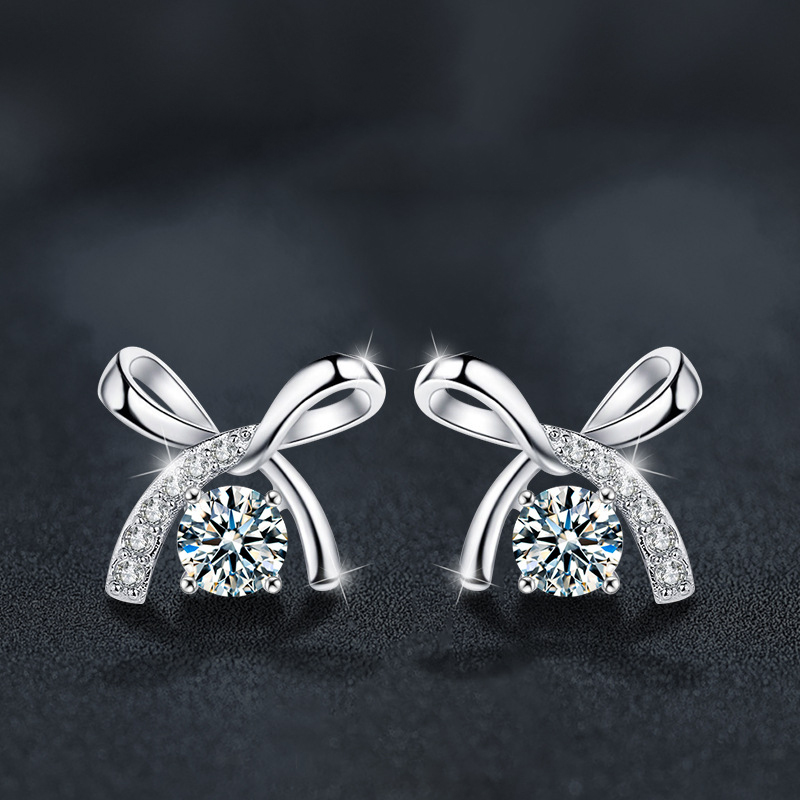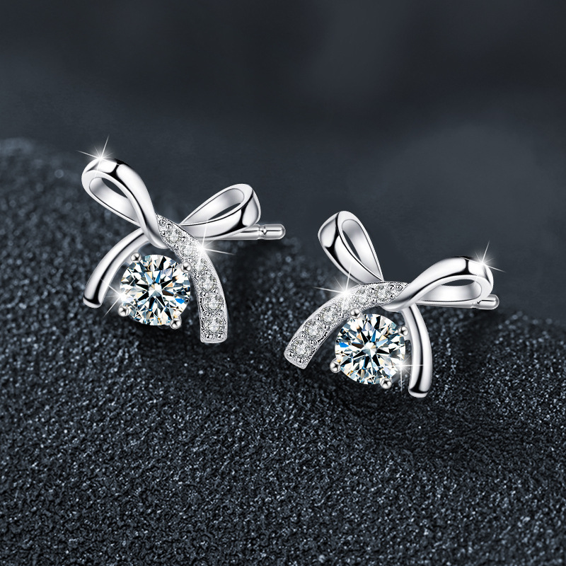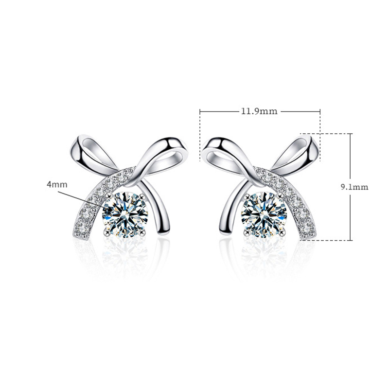925 sterline d'argento orecchini a borchia, with Moissanite, Nodo di Cravatta, gioielli di moda & per la donna, nessuno, 11.90x9.10mm, Venduto da coppia