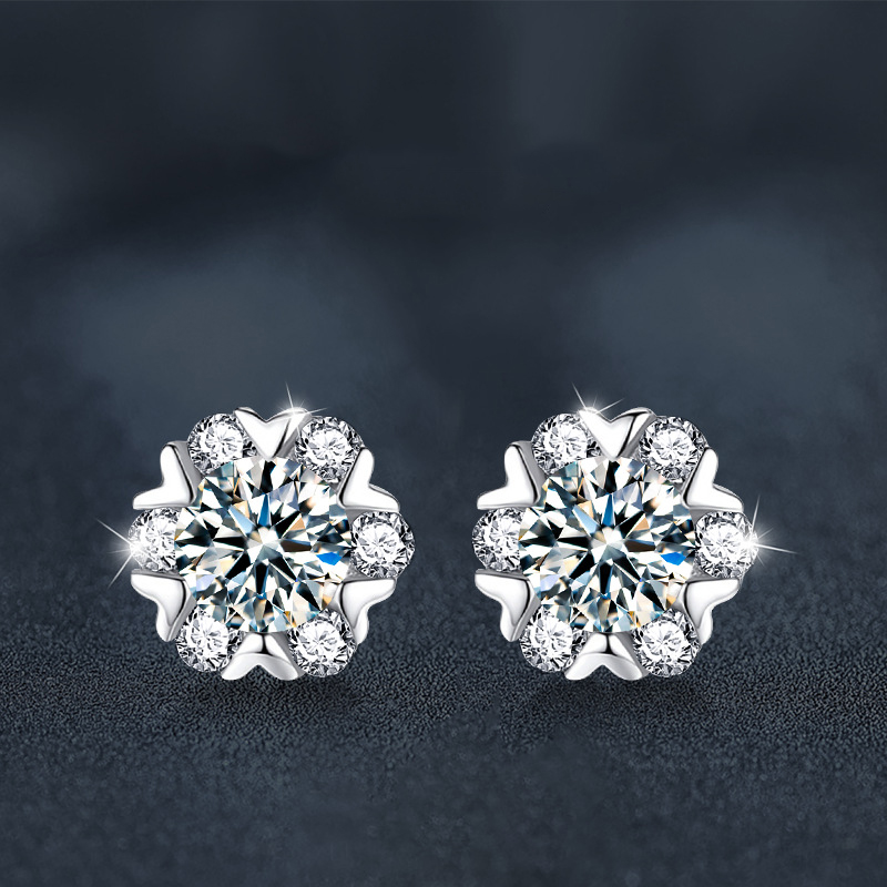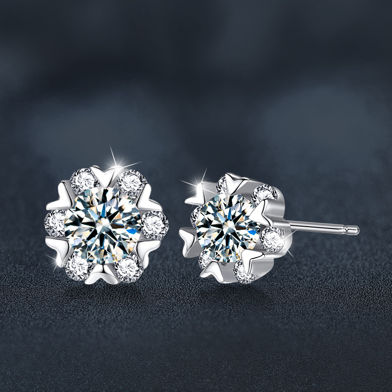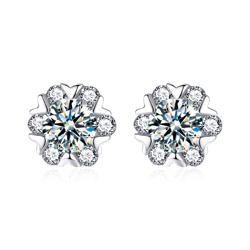 925 sterline d'argento orecchini a borchia, with Moissanite, Fiocco di Neve, placcato platino, gioielli di moda & per la donna, 8.32mm, Venduto da coppia