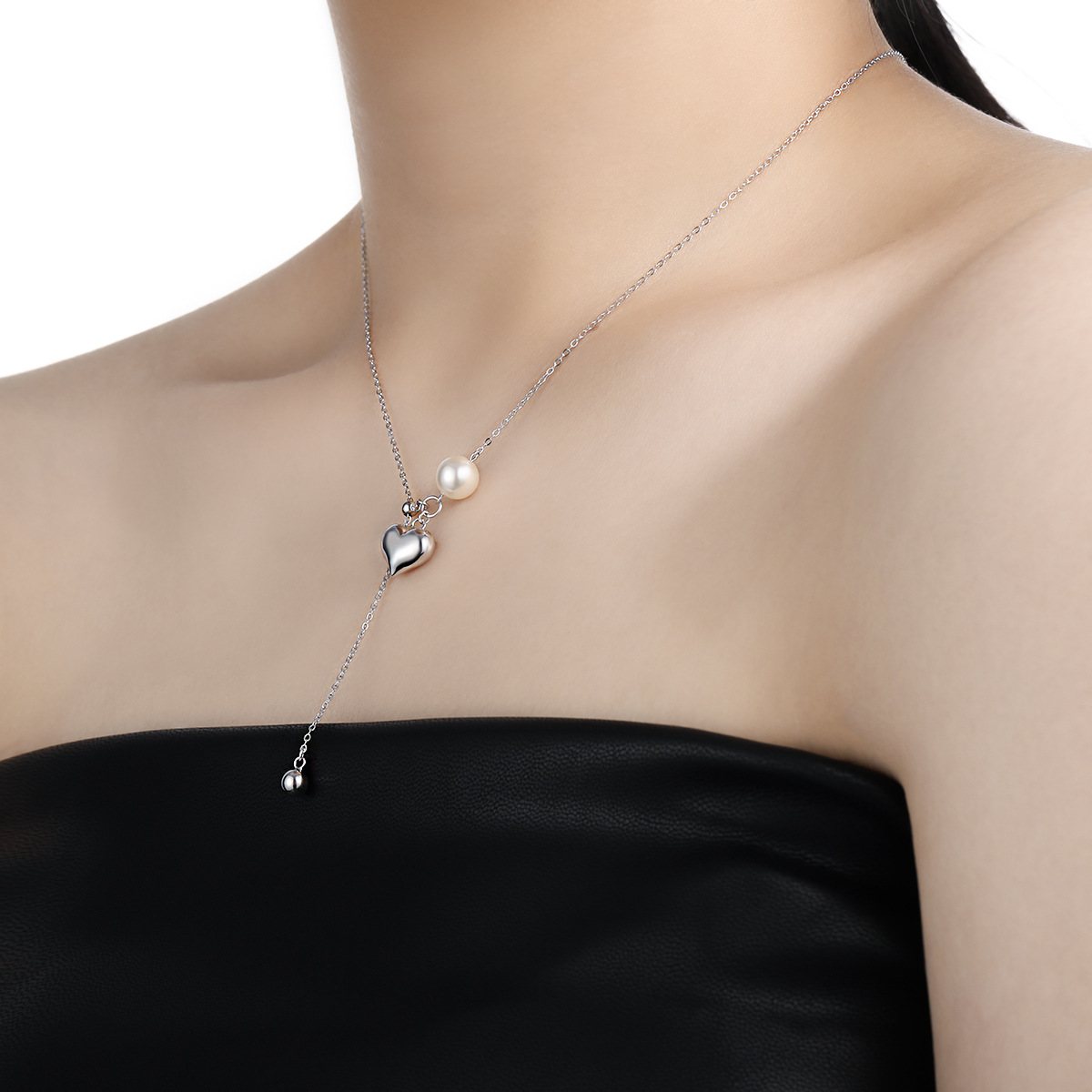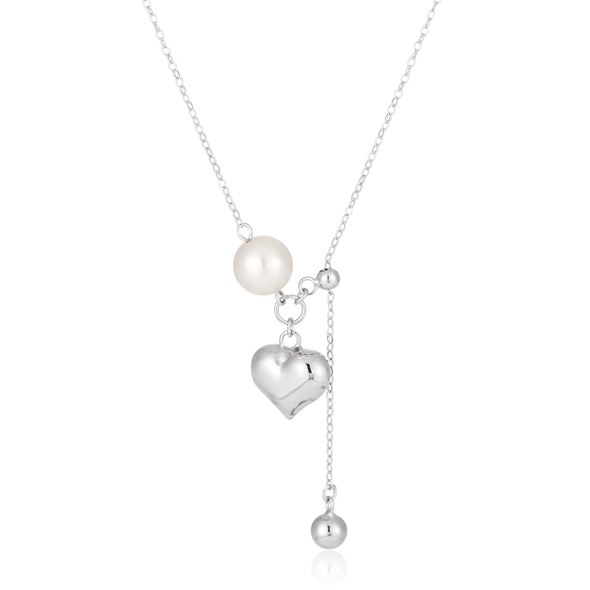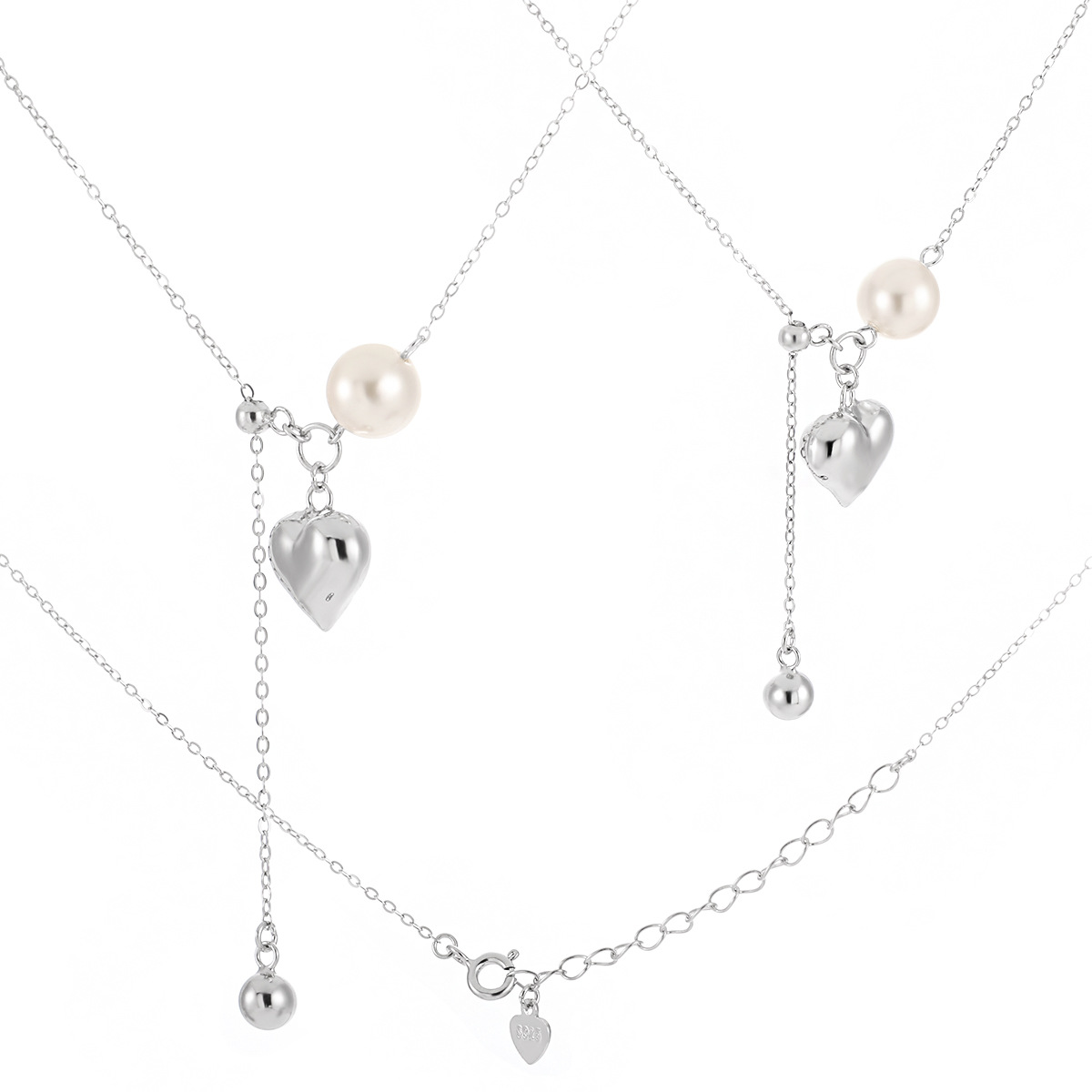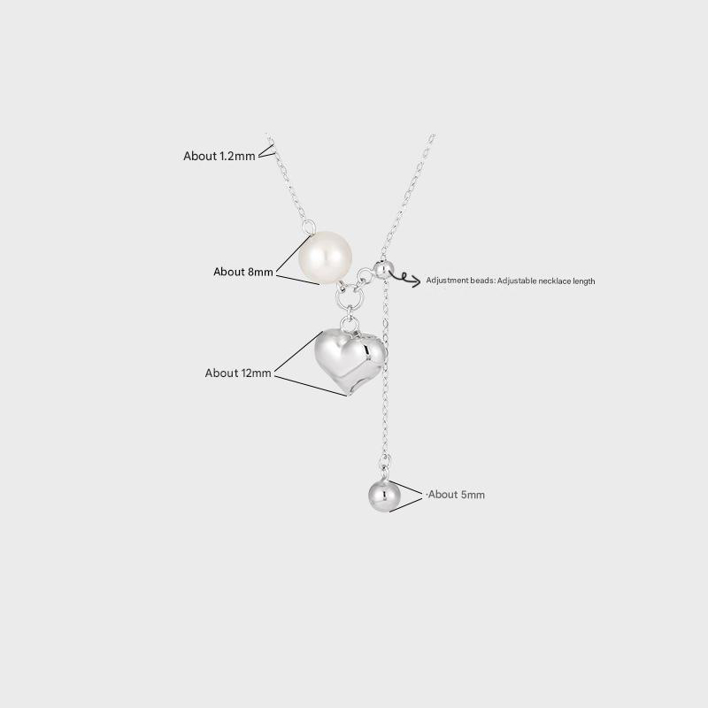 925 sterline d'argento collana, with Shell Pearl, with 2inch extender chain, Cuore, placcato platino, per la donna, Lunghezza Appross. 17.7 pollice, Venduto da PC