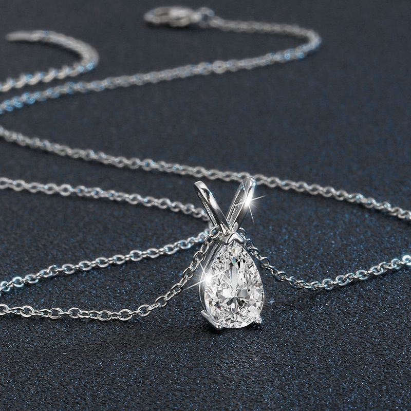 925 sterline d'argento collana, with Moissanite, with 2inch extender chain, Lacrima, per la donna, nessuno, Lunghezza Appross. 15.7 pollice, Venduto da PC