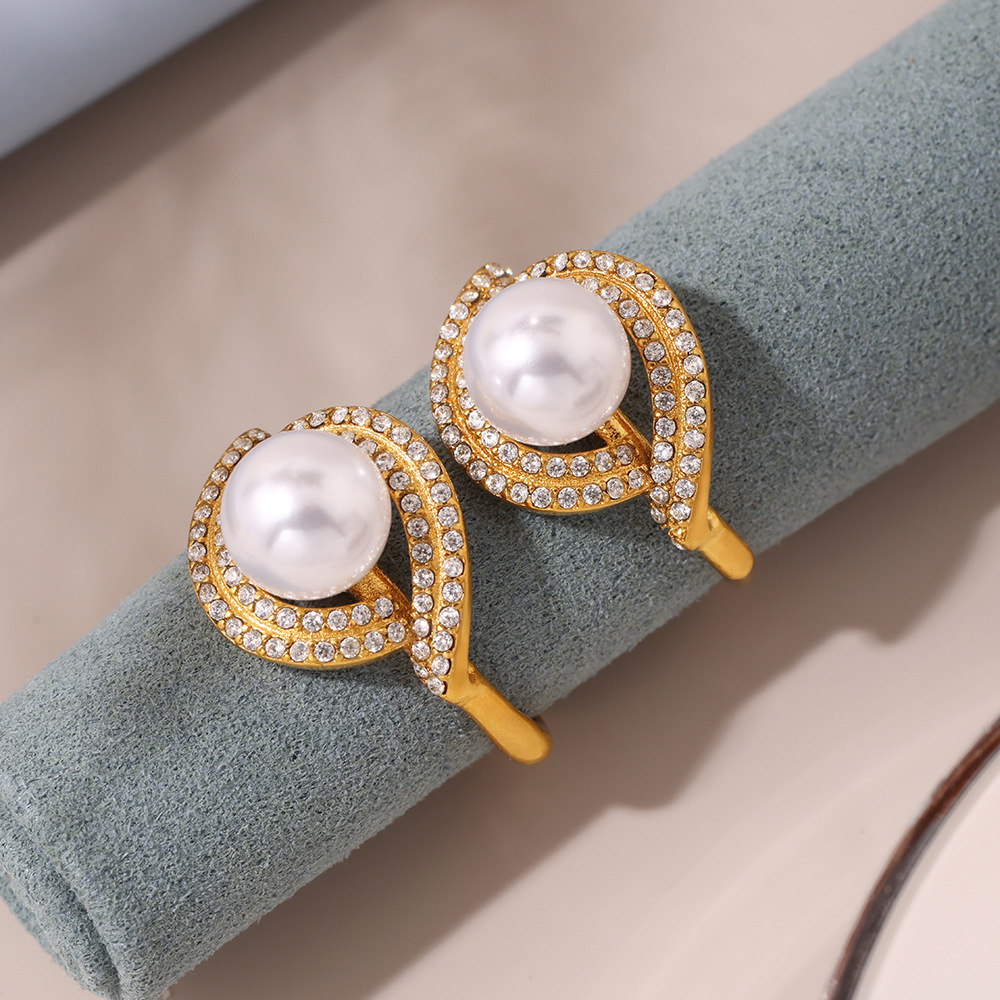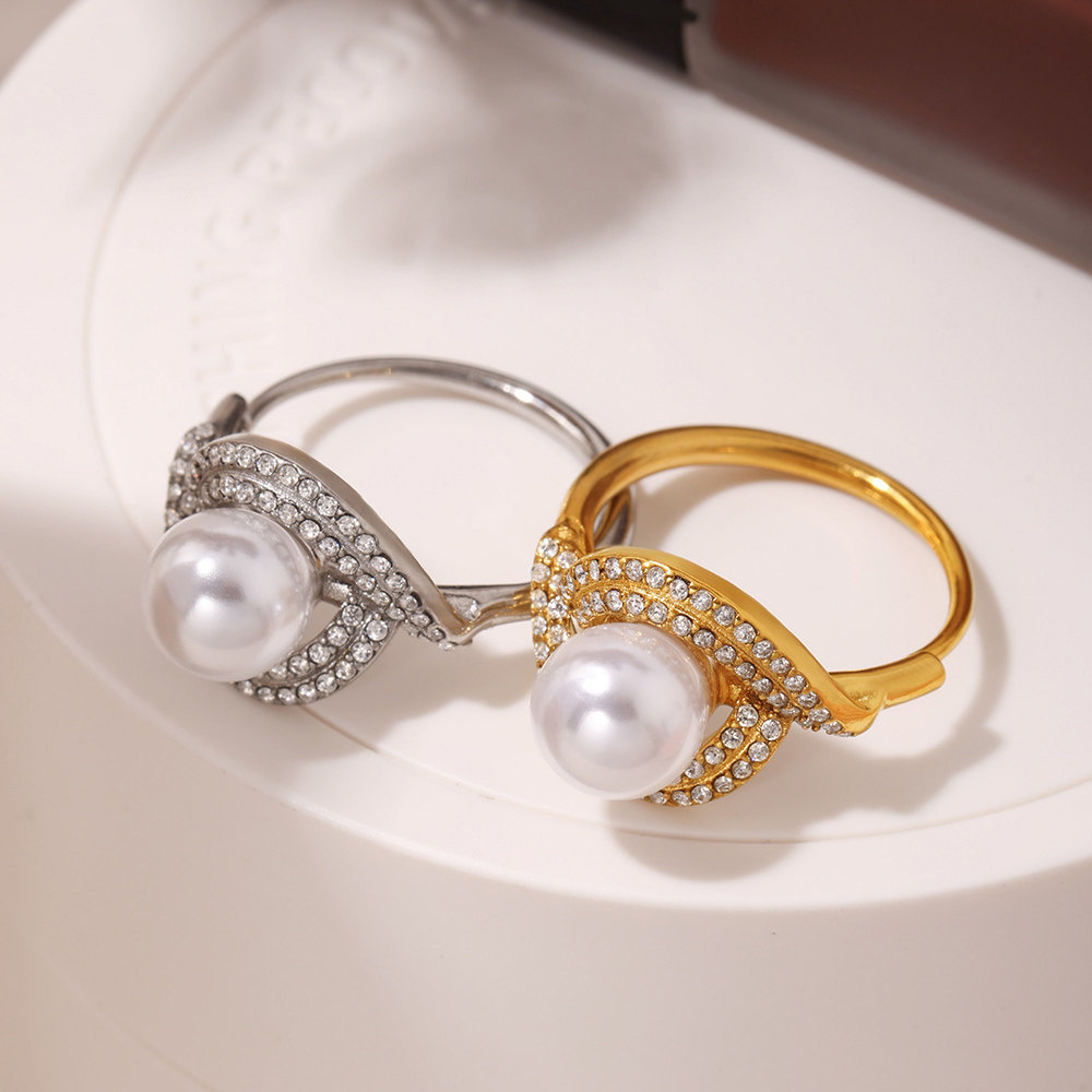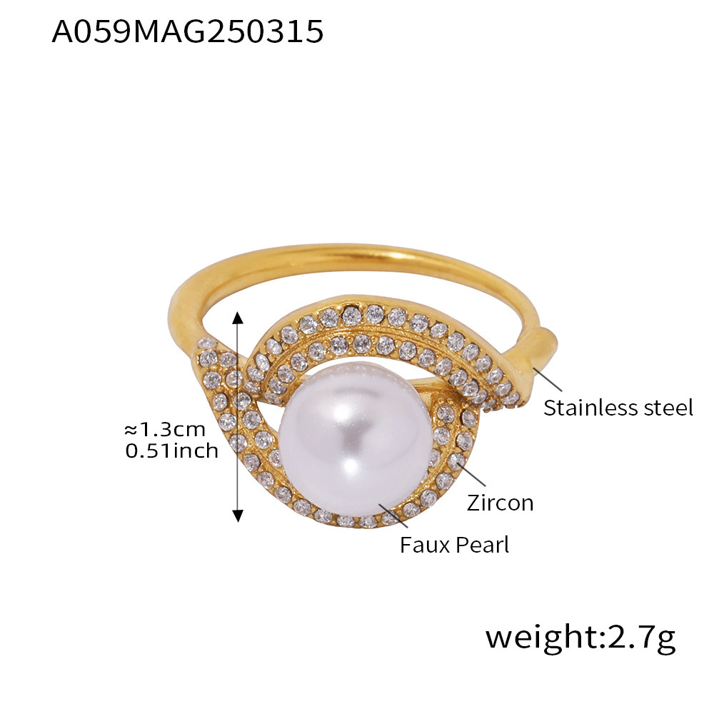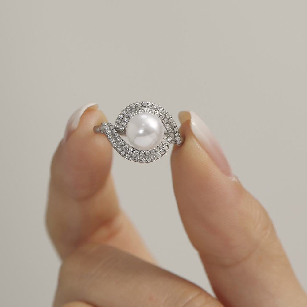 Anello in acciaio inox zirconi, 304 acciaio inox, with Shell Pearl, placcato, Micro spianare cubic zirconia & per la donna & cavo, nessuno, Venduto da PC