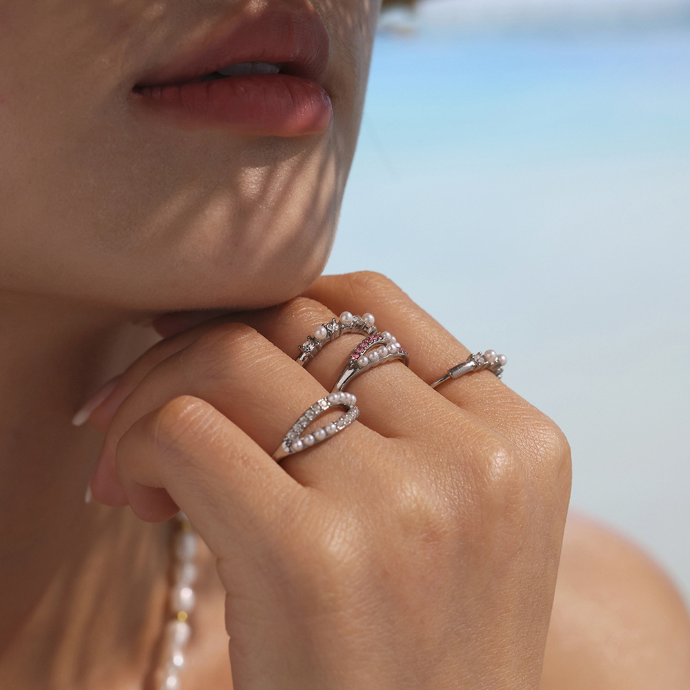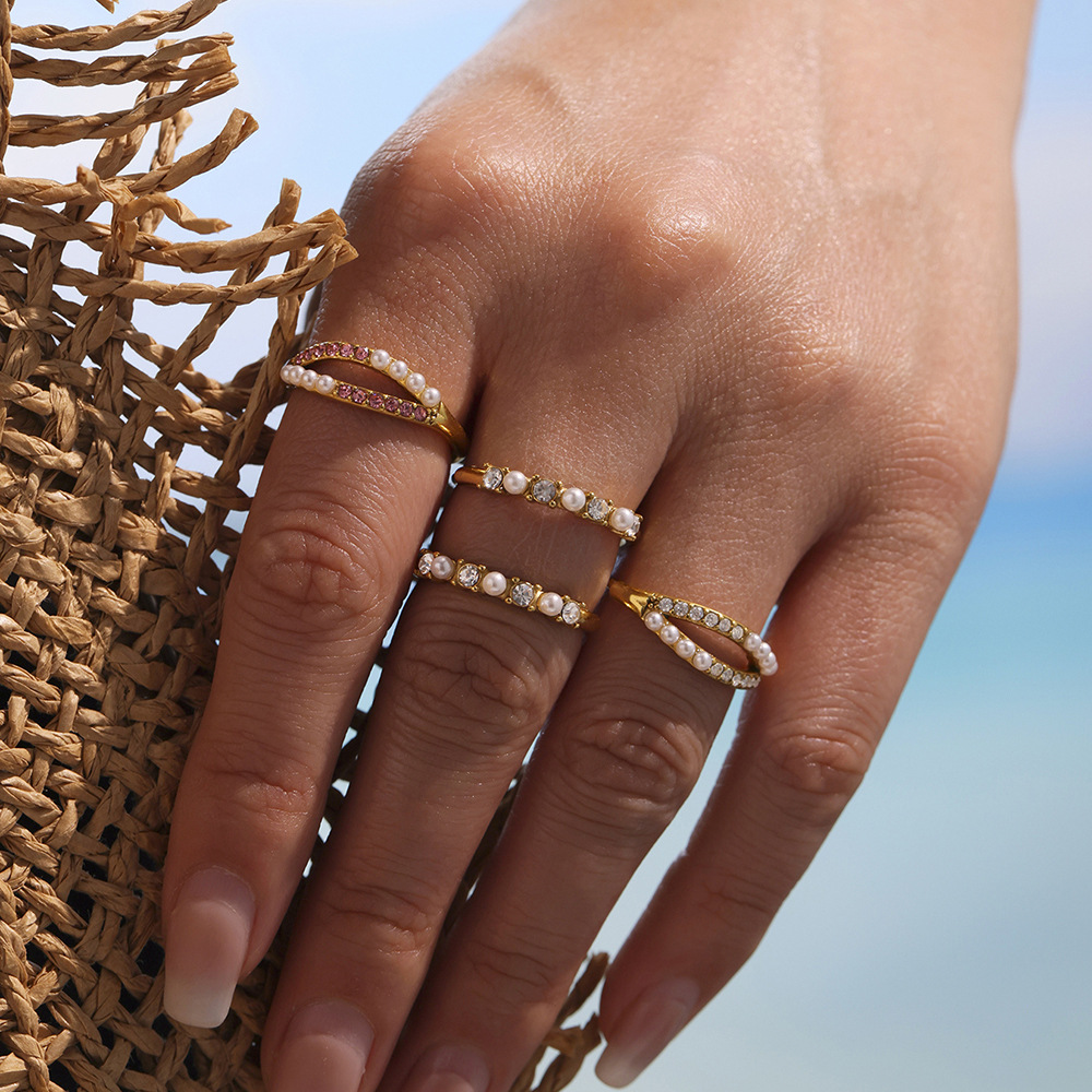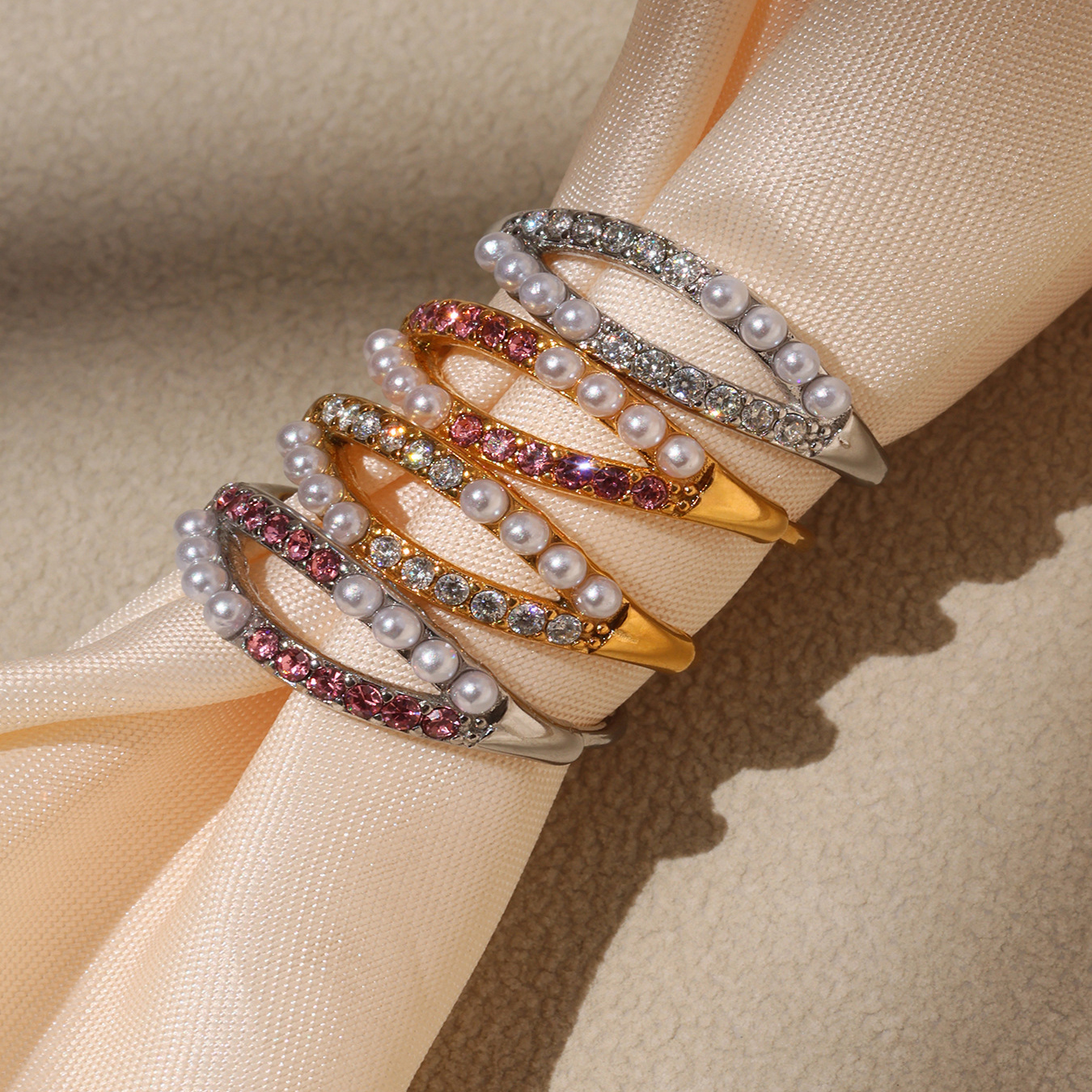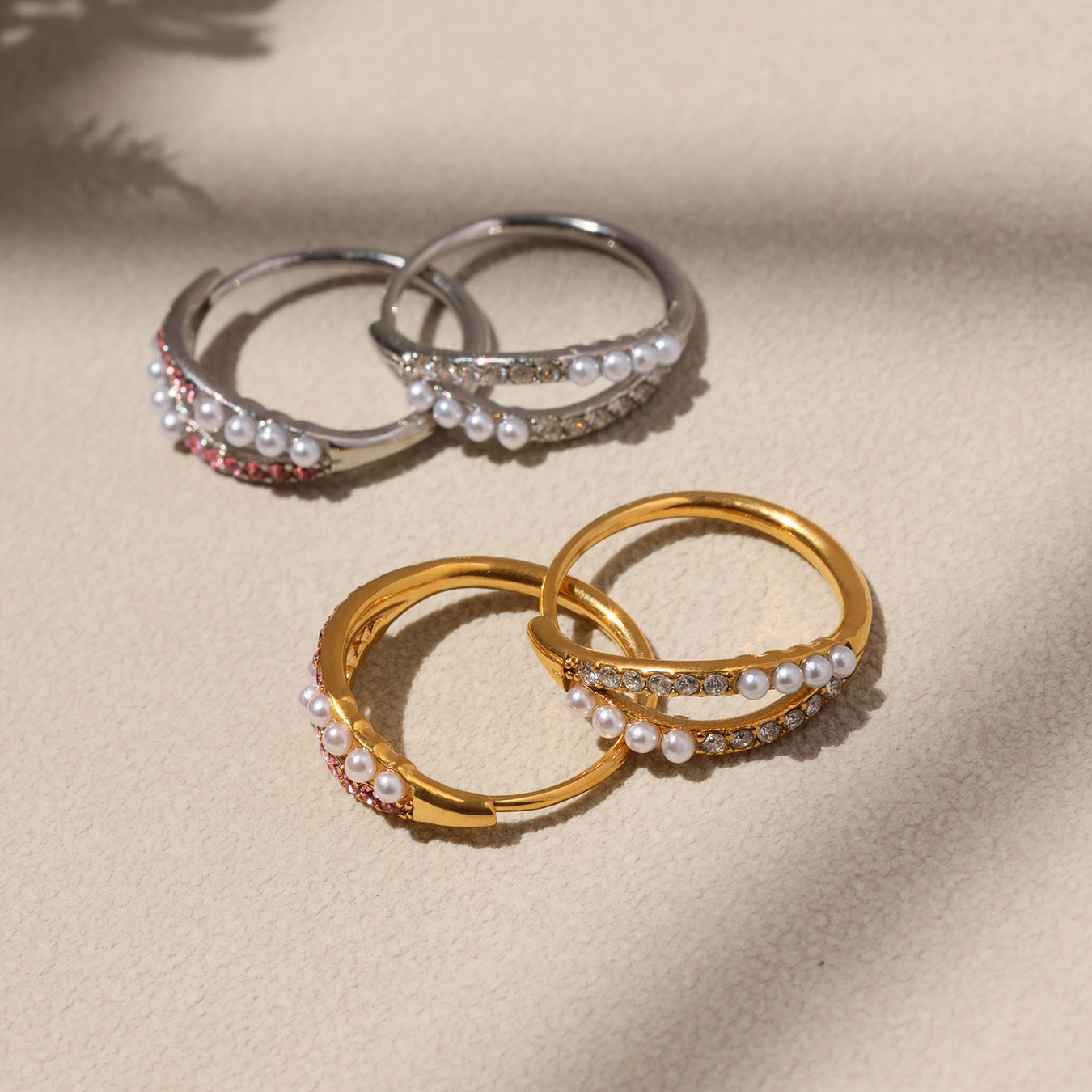 Anello in acciaio inox zirconi, 304 acciaio inox, with Shell Pearl & cubico zircone, placcato, gioielli di moda & per la donna & cavo, nessuno, Venduto da PC
