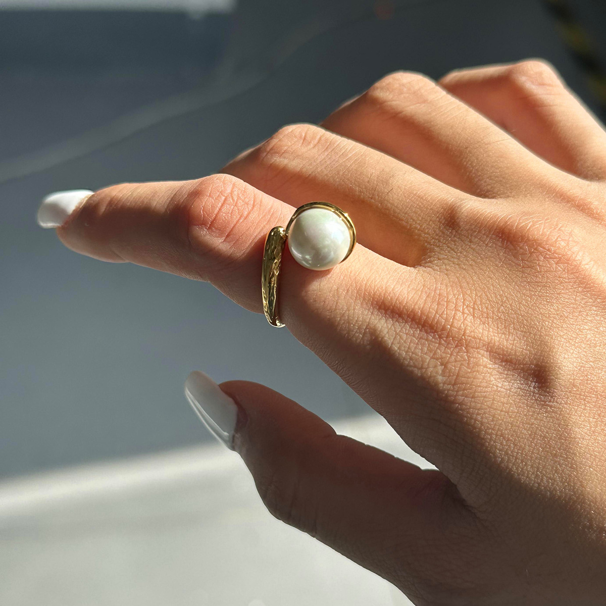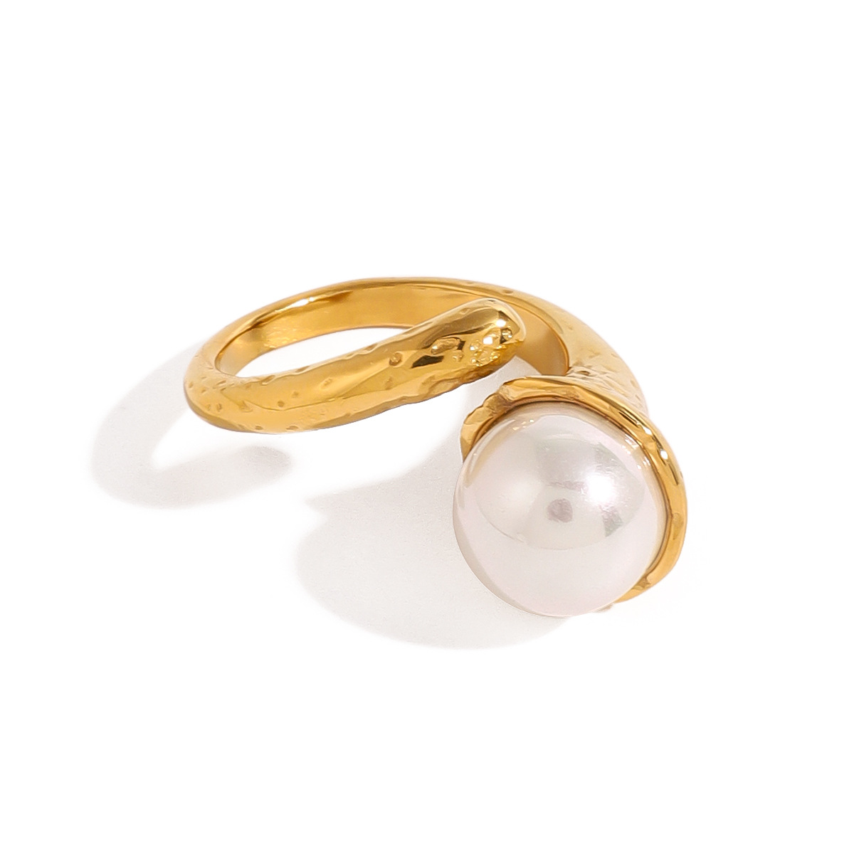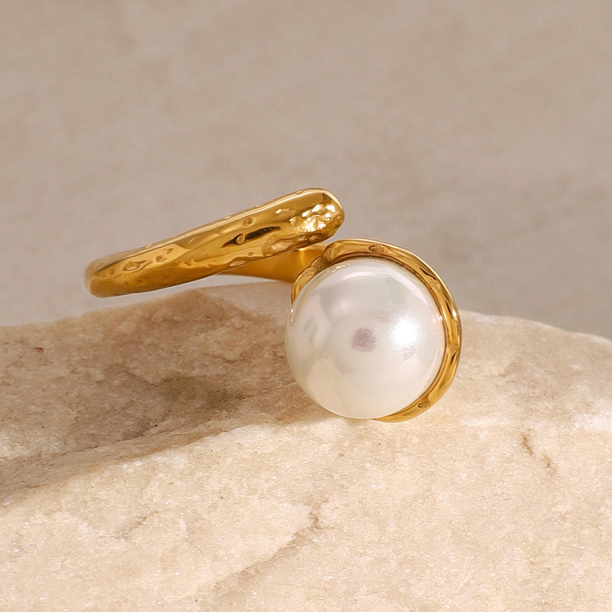 Anello in acciaio inox, 304 acciaio inox, with perla in vetro, placcato, gioielli di moda & per la donna, dorato, Venduto da PC