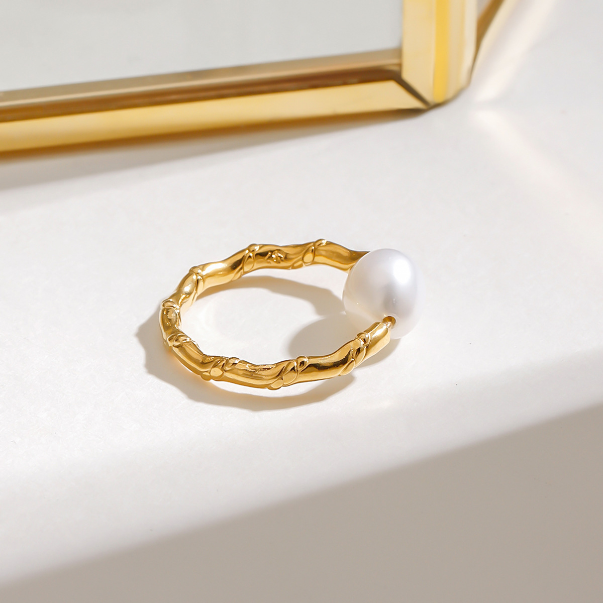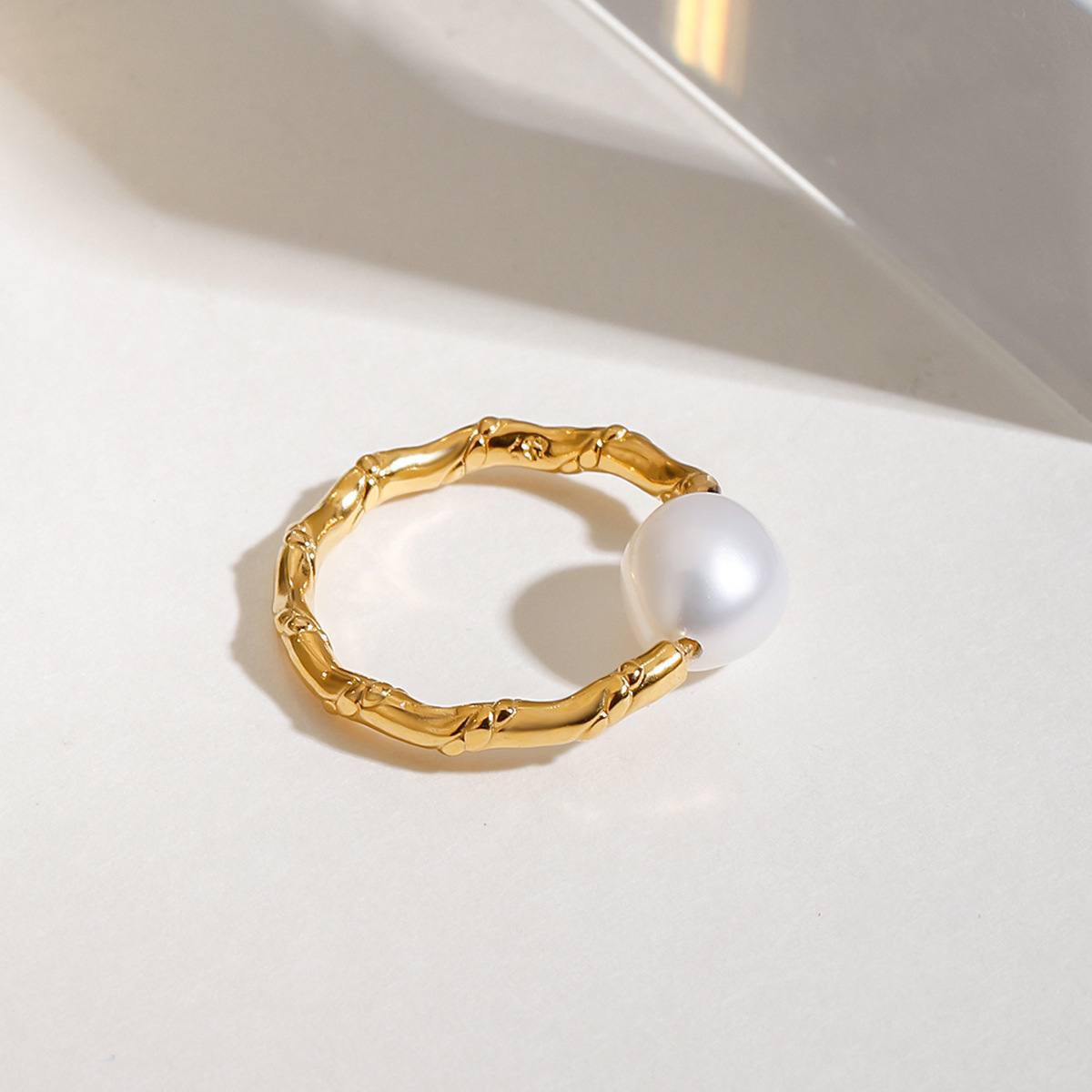 Anello in acciaio inox, 304 acciaio inox, with perla in plastica, placcato color oro, gioielli di moda, dorato, Venduto da PC