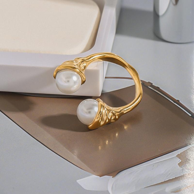Anello in acciaio inox, 304 acciaio inox, with perla in plastica, placcato color oro, gioielli di moda & stili diversi per la scelta & per la donna, Venduto da PC