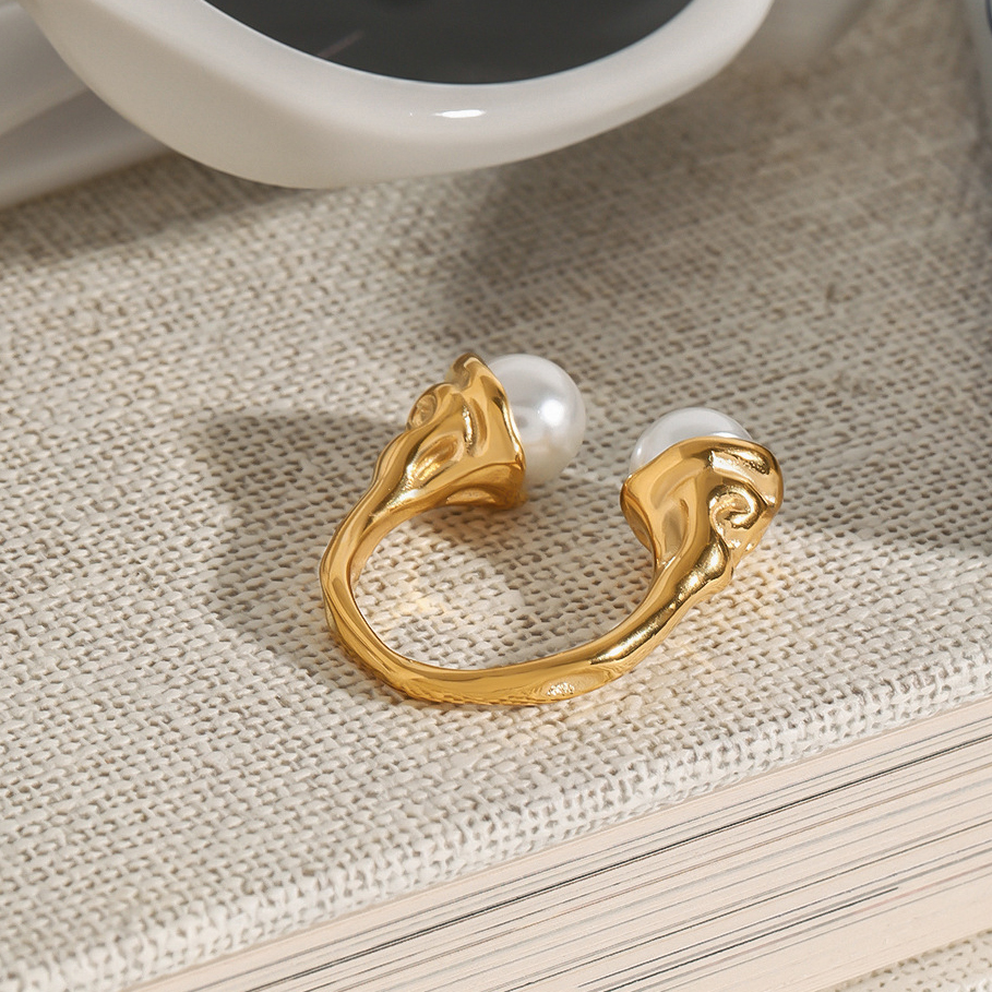 Anello in acciaio inox, 304 acciaio inox, with Shell Pearl, Placcato oro 18K, gioielli di moda & per la donna, Venduto da PC