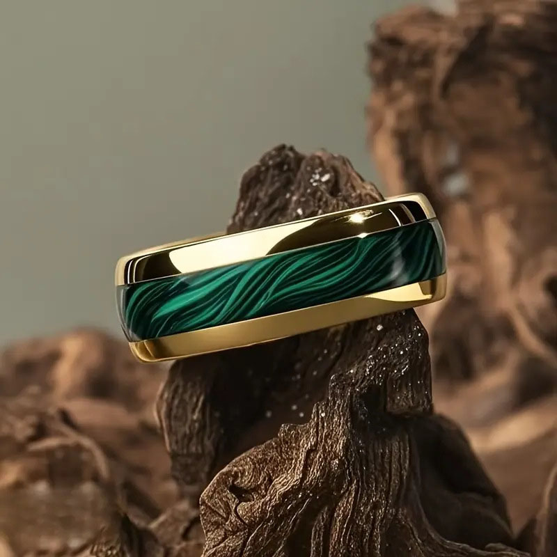 Anello in acciaio inox, 201 Acciaio inossidabile, placcato, formato differente per scelta & per l'uomo & adesivo epoxi, dorato, wide:8mm, Venduto da PC