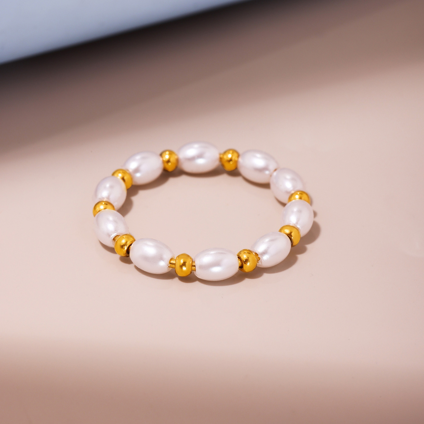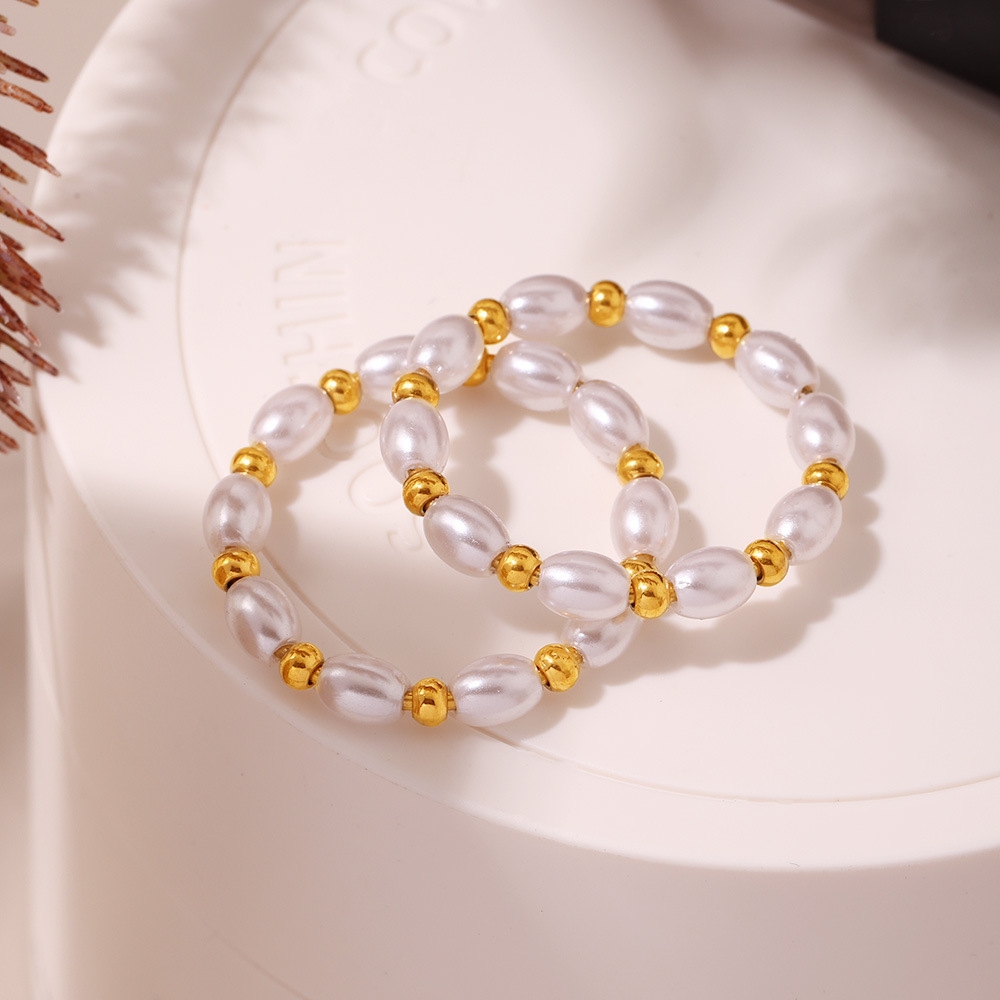 Anello in acciaio inox, 304 acciaio inox, with perla in plastica, placcato color oro, gioielli di moda & stili diversi per la scelta & per la donna, Venduto da PC