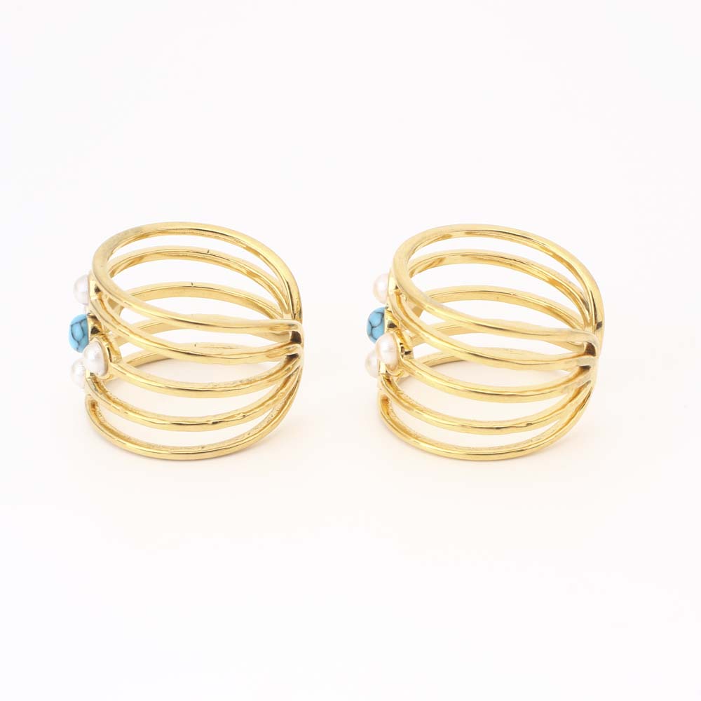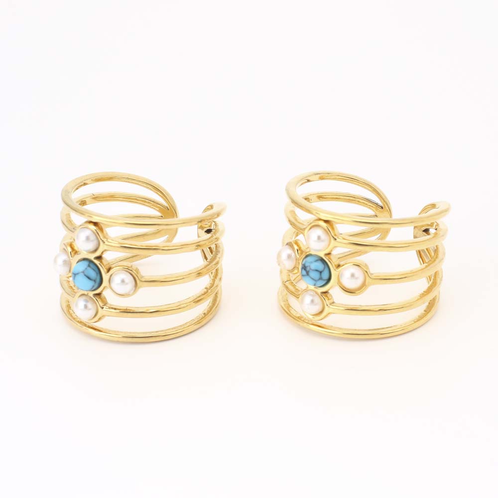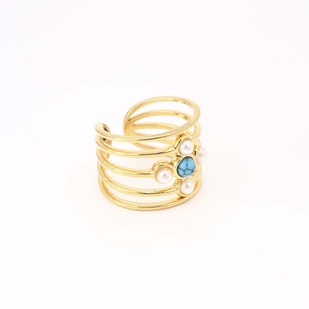 Anello in acciaio inox, 304 acciaio inox, with turchese & perla in plastica, gioielli di moda & per la donna, dorato, Inner diameter: 19mm, Venduto da PC
