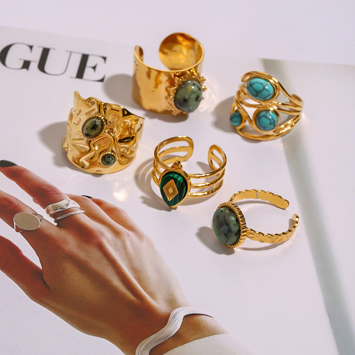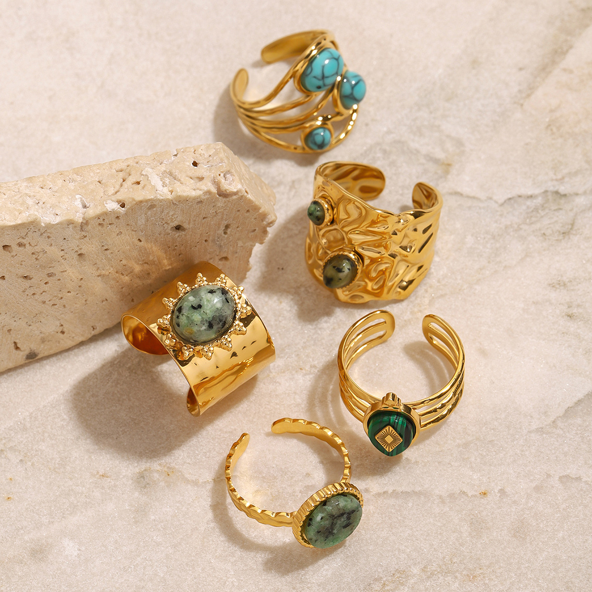 Anello in acciaio inox, 304 acciaio inox, with Pietra naturale, placcato, stili diversi per la scelta & per la donna & cavo, dorato, Venduto da PC