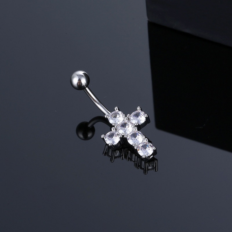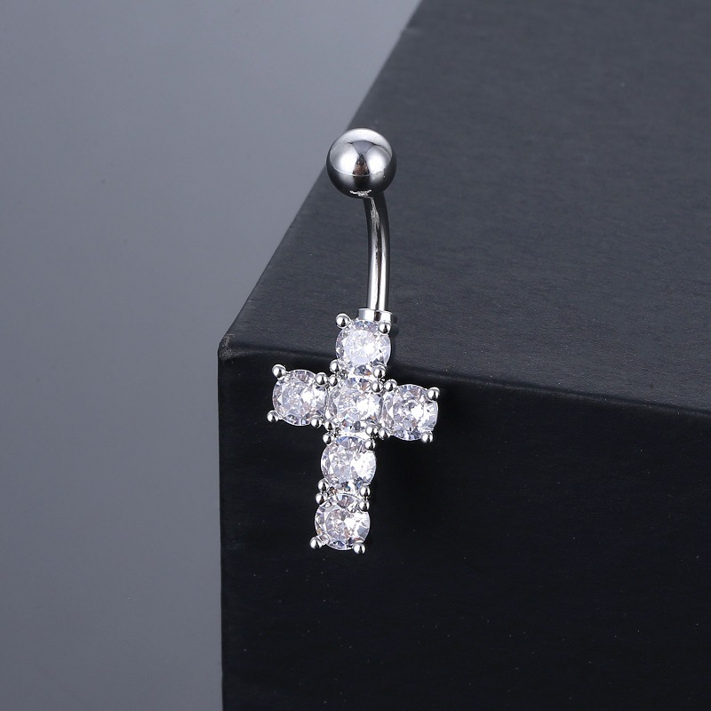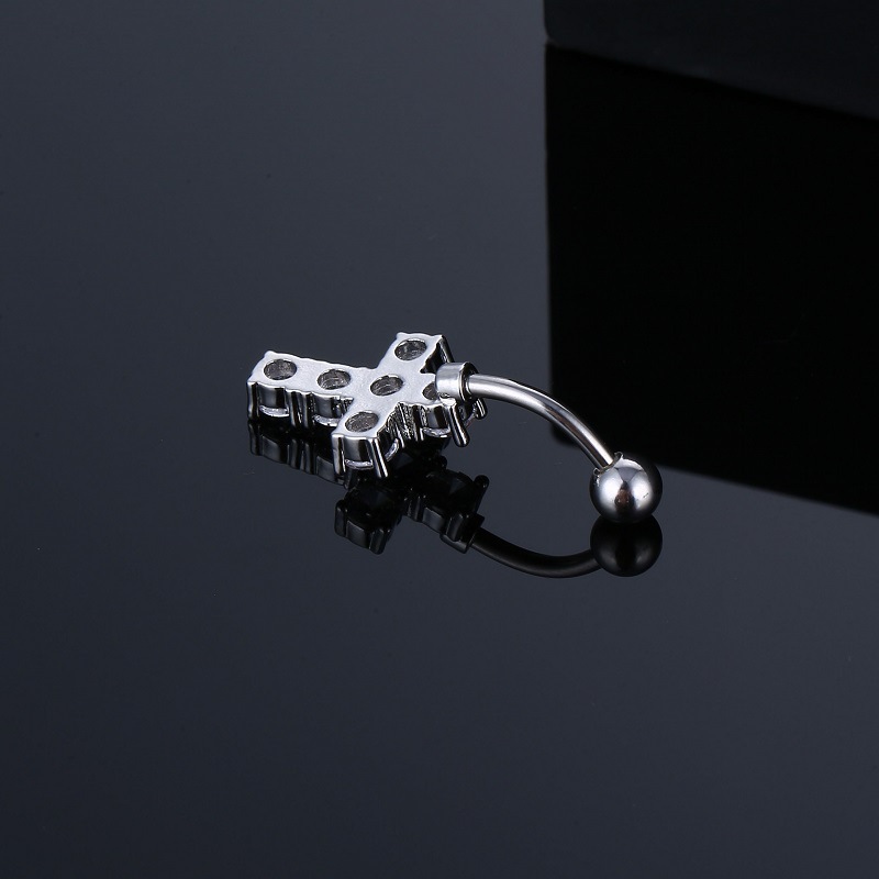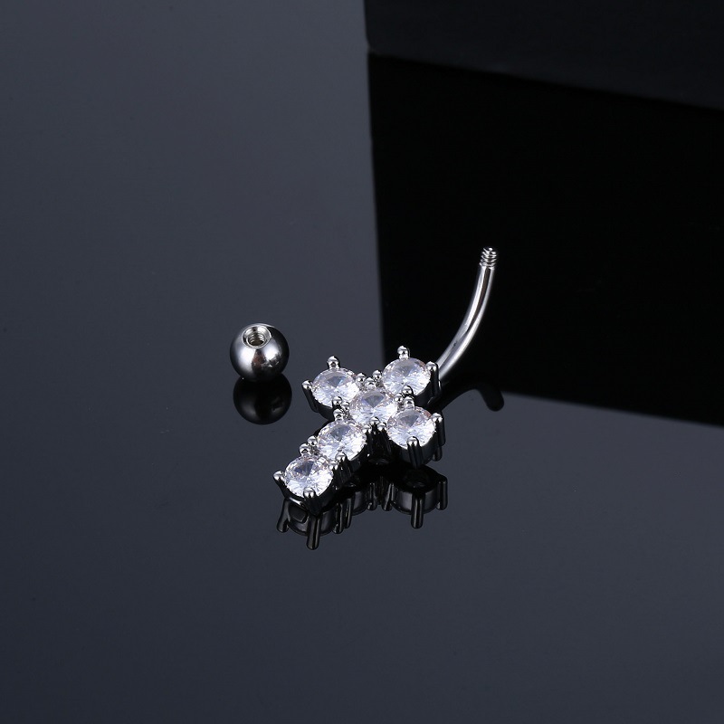 Belly Ring Ottone, with 316 acciaio inox, Croce, unisex & Micro spianare cubic zirconia, 10x30mm, Venduto da PC