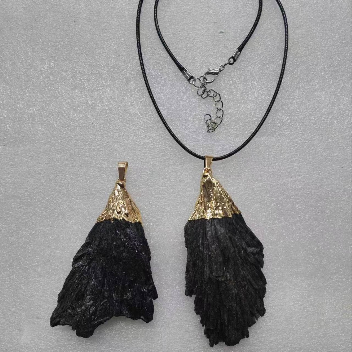 Gioielli ciondoli con gemme, Schorl, with cavo di cuoio, Irregolare, placcato, DIY & stili diversi per la scelta, nessuno, 67x42mm, Lunghezza 45 cm, Venduto da PC
