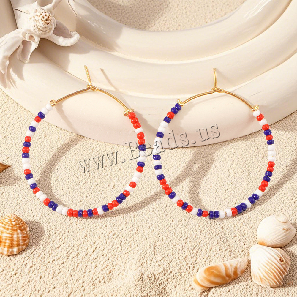 Gioielli orecchini, Seedbead, with 304 acciaio inox, placcato color oro, per la donna, colori misti, 24.50x22x1.30mm, Venduto da coppia