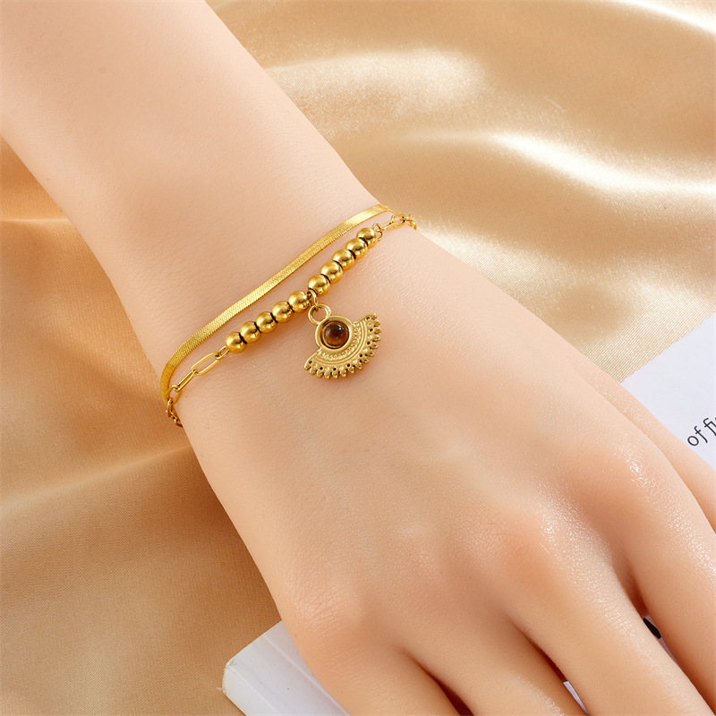 Bracciale gioielli in acciaio inossidabile, 304 acciaio inox, with pietra preziosa, placcato color oro, gioielli di moda, dorato, Venduto da PC