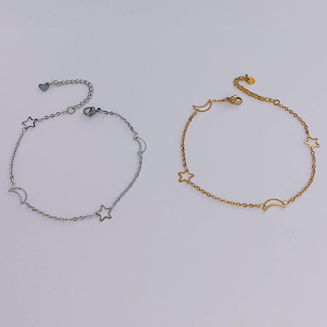 Bracciale gioielli in acciaio inossidabile, 304 acciaio inox, Luna e Stella, placcato, per la donna, nessuno, Lunghezza 14 cm, Venduto da PC