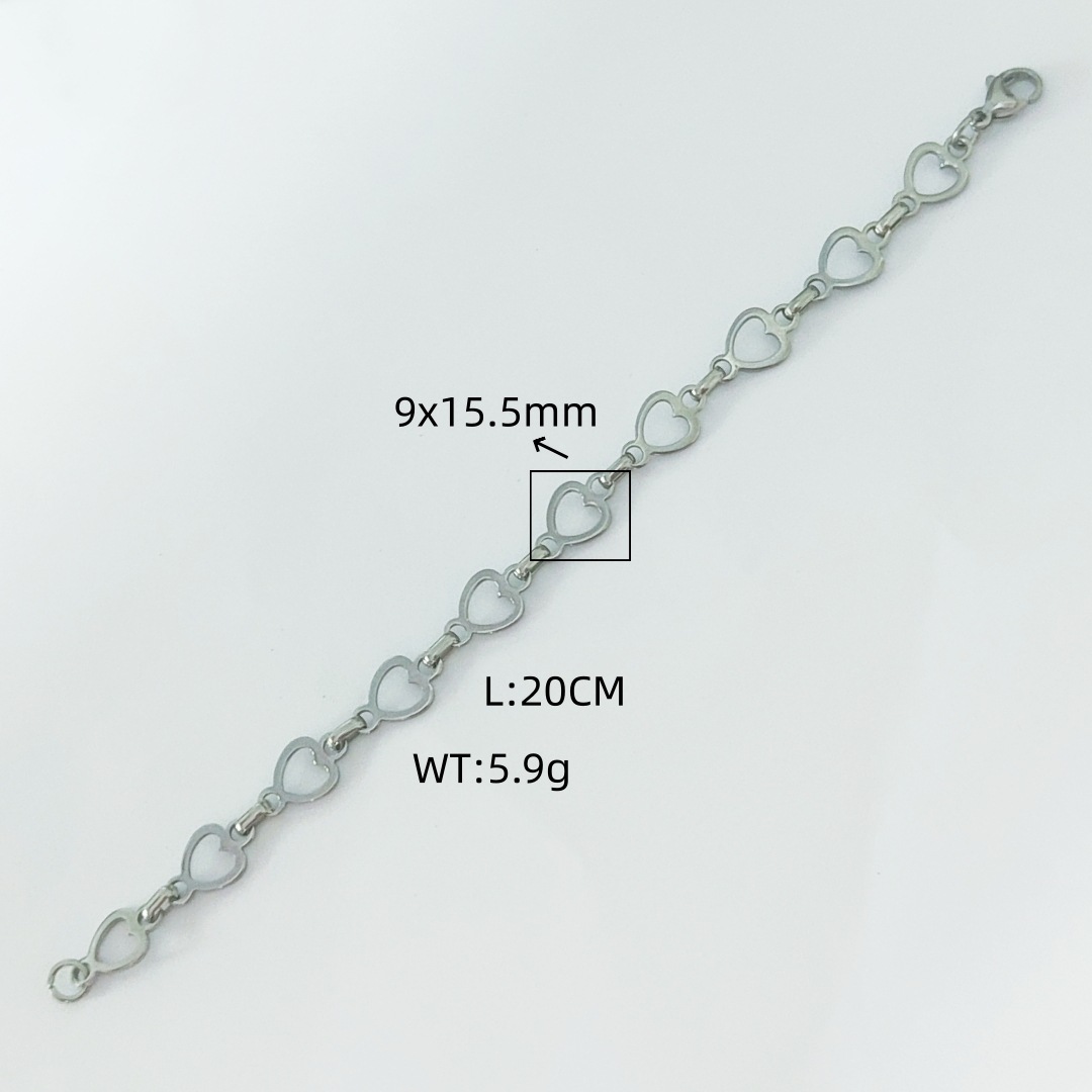 Bracciale gioielli in acciaio inossidabile, 304 acciaio inox, Cuore, placcato color argento, per la donna, Venduto da PC