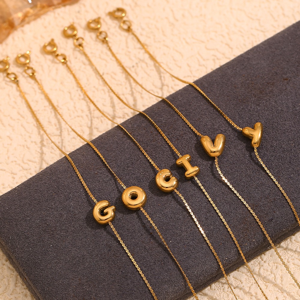 Bracciale gioielli in acciaio inossidabile, 304 acciaio inox, Lettera alfabeto, placcato color oro, stili diversi per la scelta & per la donna, nessuno, Lunghezza 15 cm, Venduto da PC