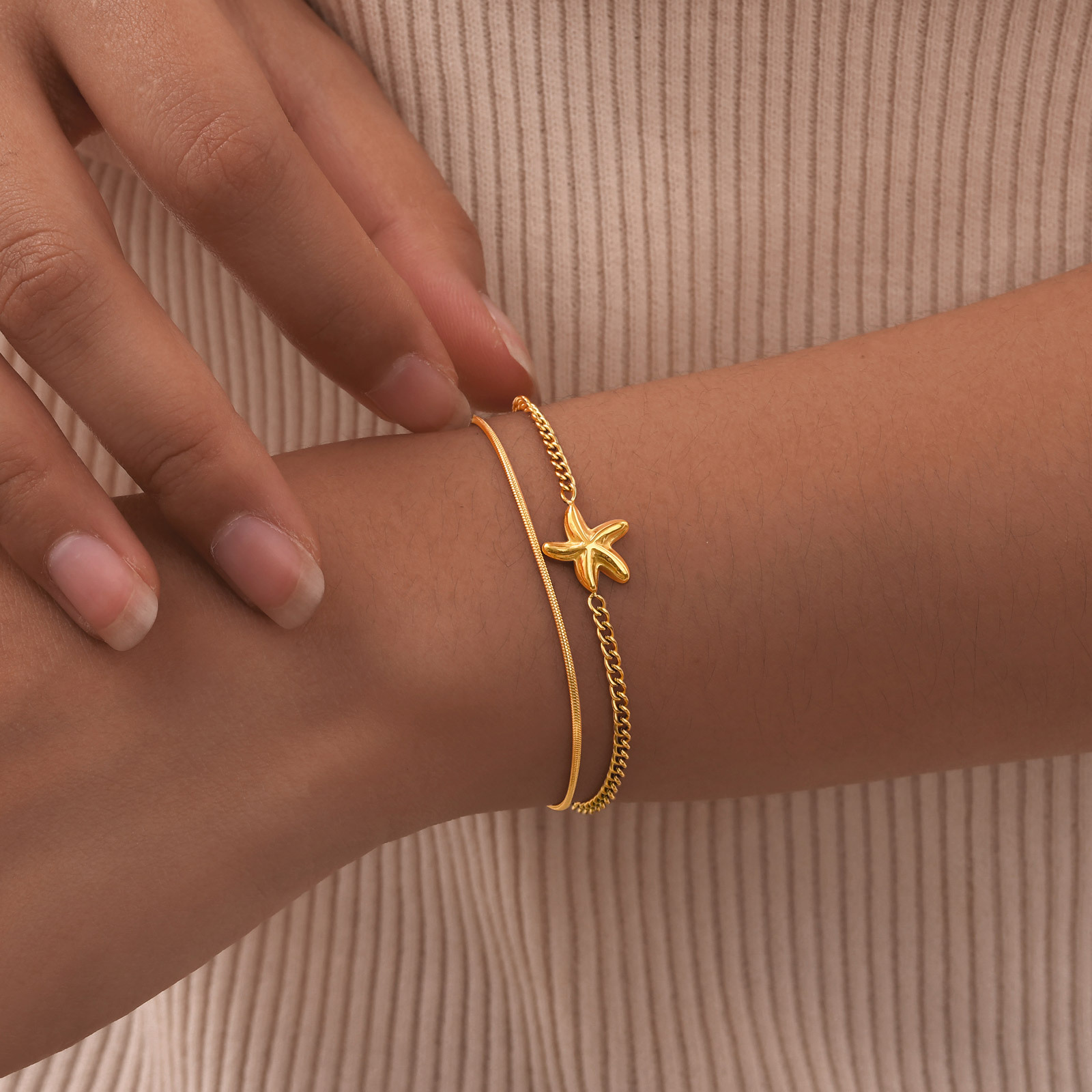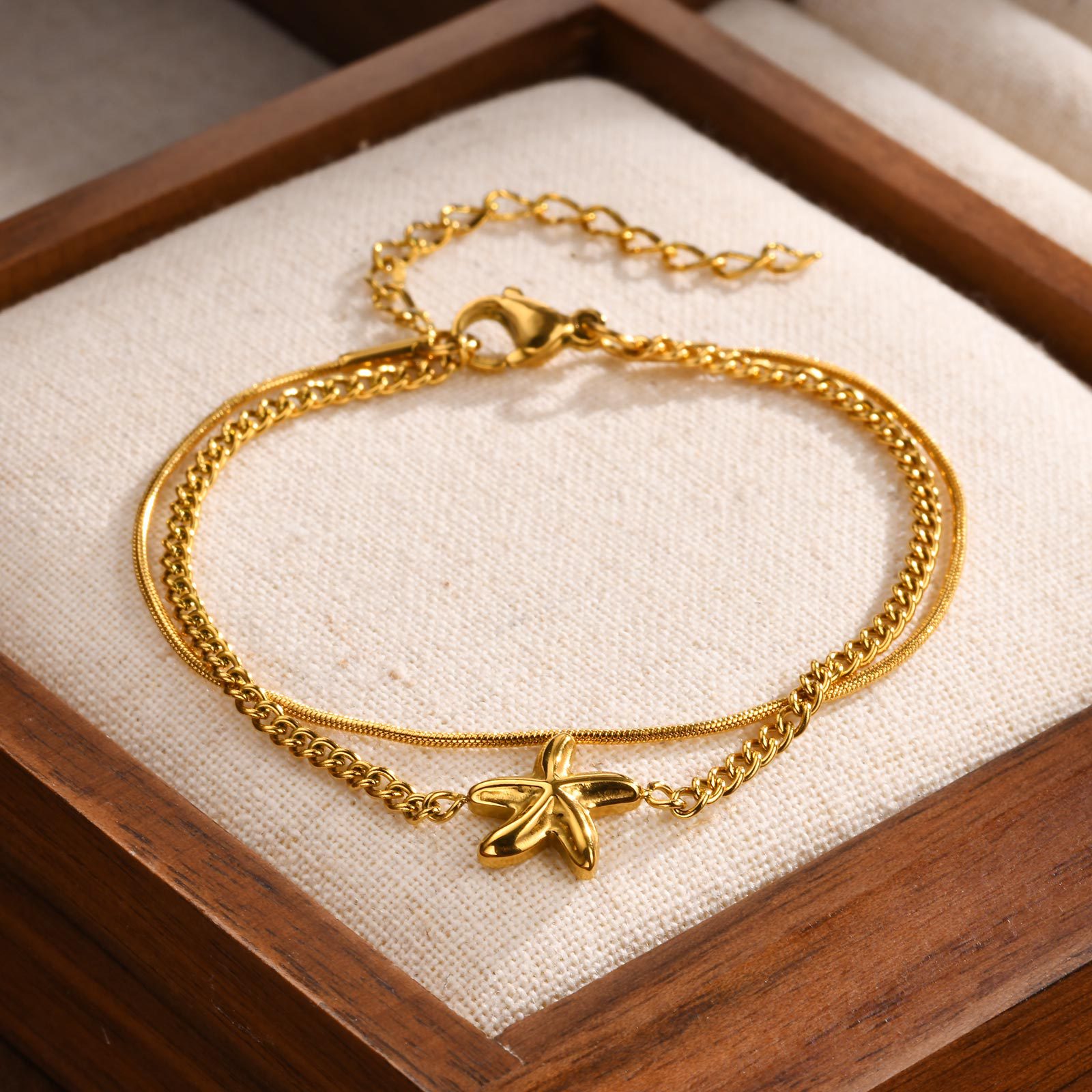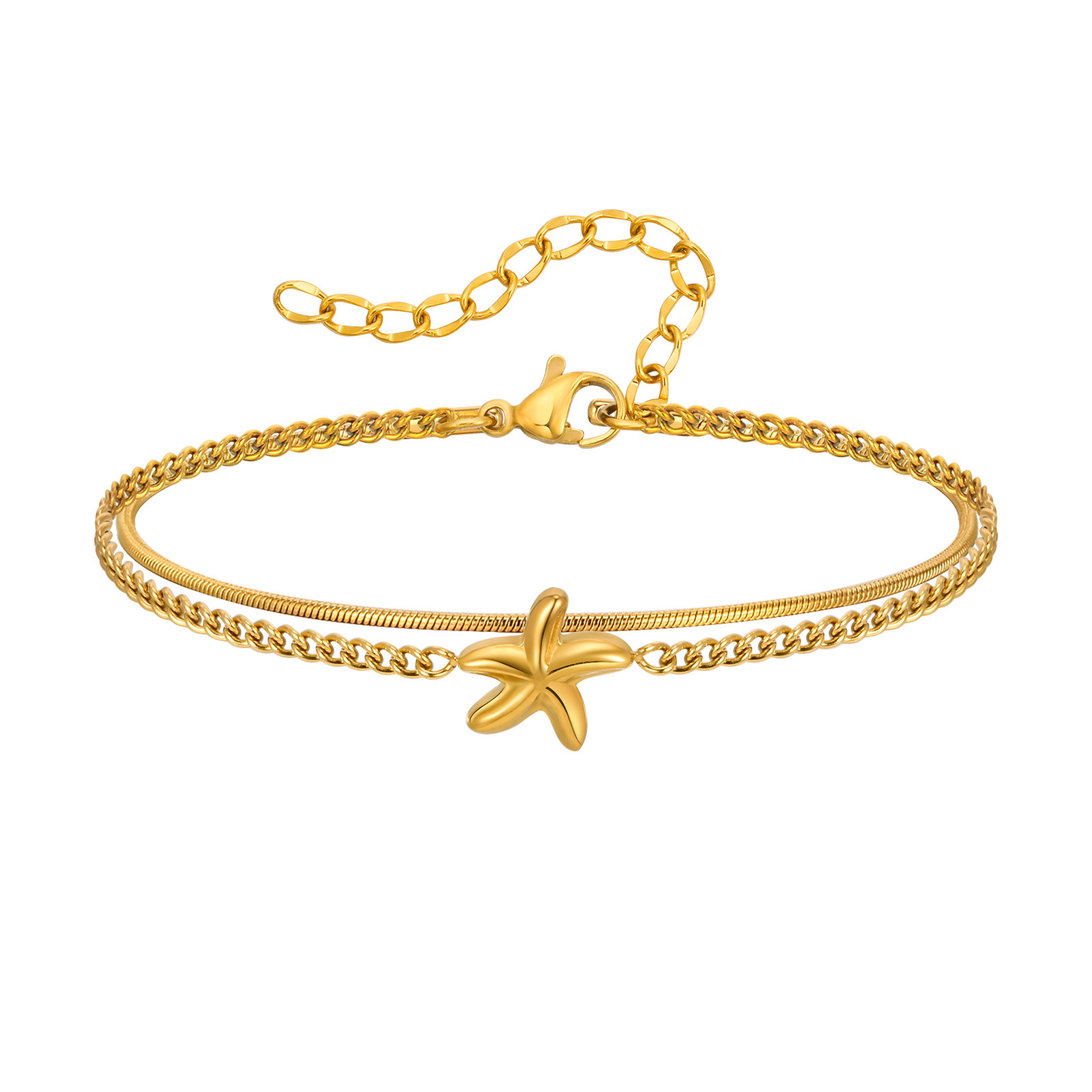 Bracciale gioielli in acciaio inossidabile, 304 acciaio inox, placcato, Doppio strato & gioielli di moda & per la donna, dorato, Lunghezza 6.29-8.27 pollice, Venduto da PC