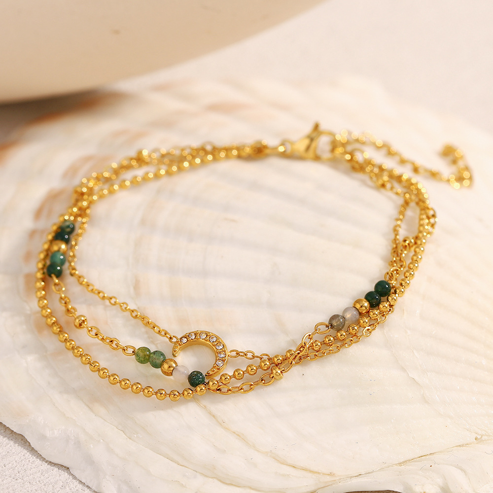 Bracciale gioielli in acciaio inossidabile, 304 acciaio inox, with acrilico, Placcato oro 18K, tre strati & per la donna & con strass, Venduto da PC
