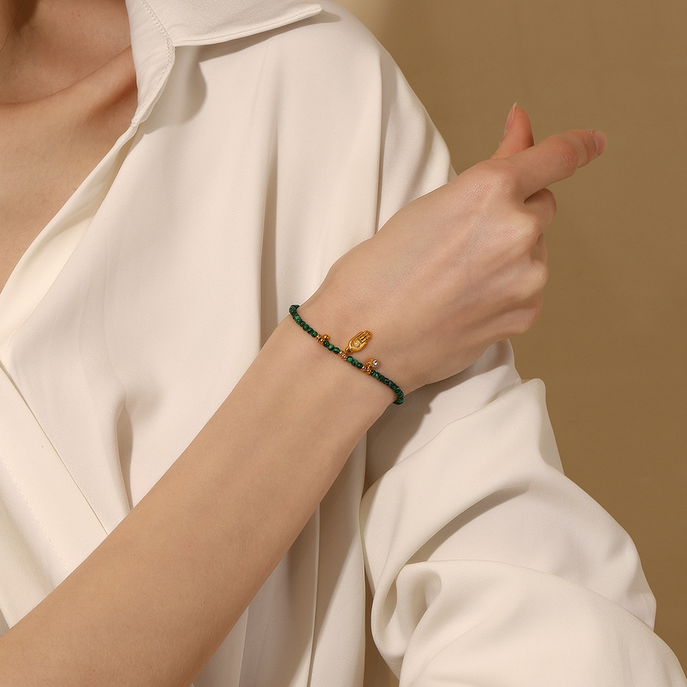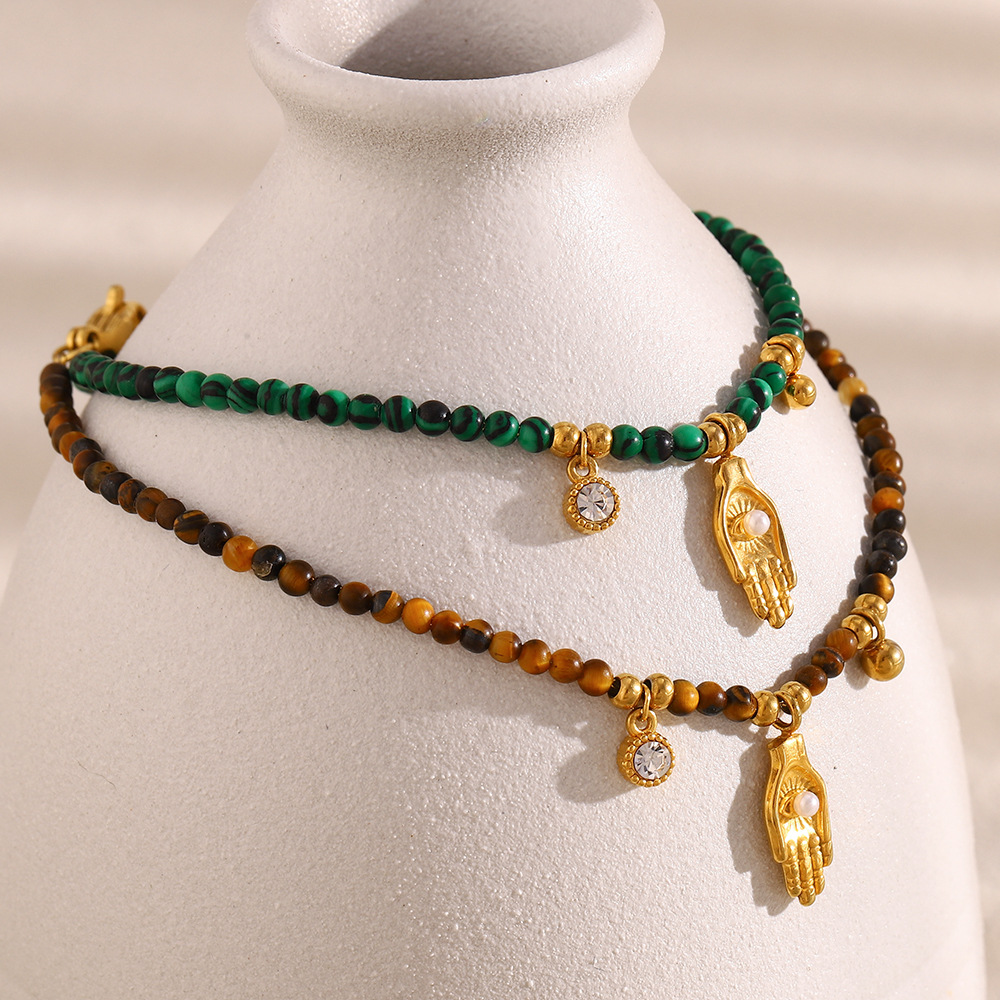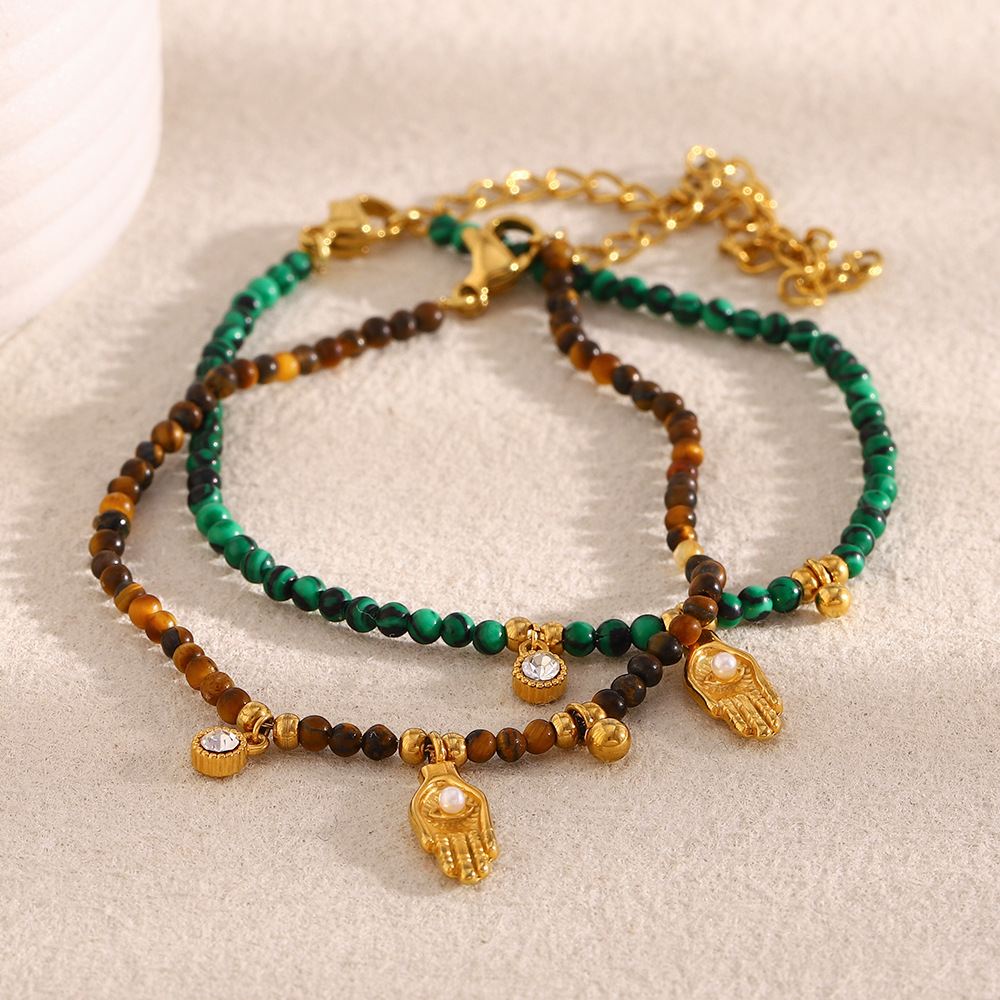 Bracciale gioielli in acciaio inossidabile, 304 acciaio inox, with Pietra naturale & perla in plastica, Placcato oro 18K, materiali diversi per la scelta & per la donna & con strass, Venduto da PC