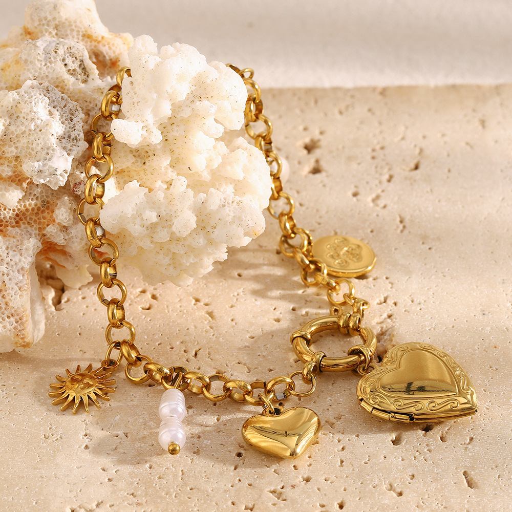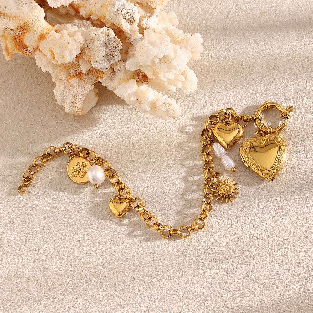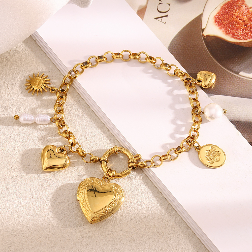 Bracciale gioielli in acciaio inossidabile, 316L acciaio inox, with perla in plastica, Placcato oro 18K, gioielli di moda & per la donna, Venduto da PC