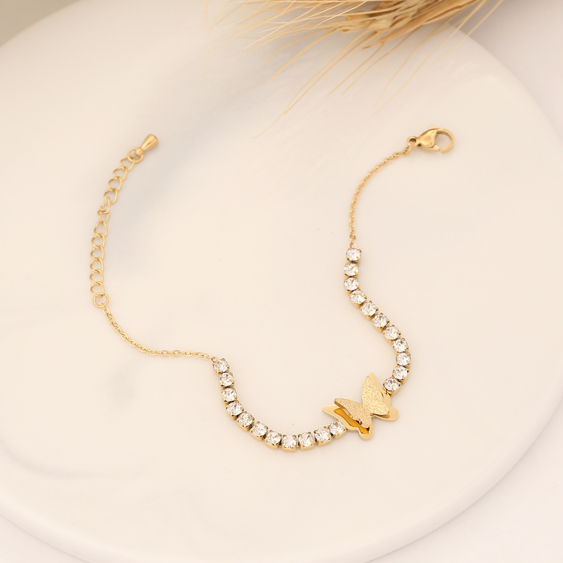 Bracciale gioielli in acciaio inossidabile, 304 acciaio inox, with cubico zircone, with 5cm extender chain, placcato, gioielli di moda & stili diversi per la scelta & per la donna, dorato, Lunghezza 18 cm, Venduto da PC