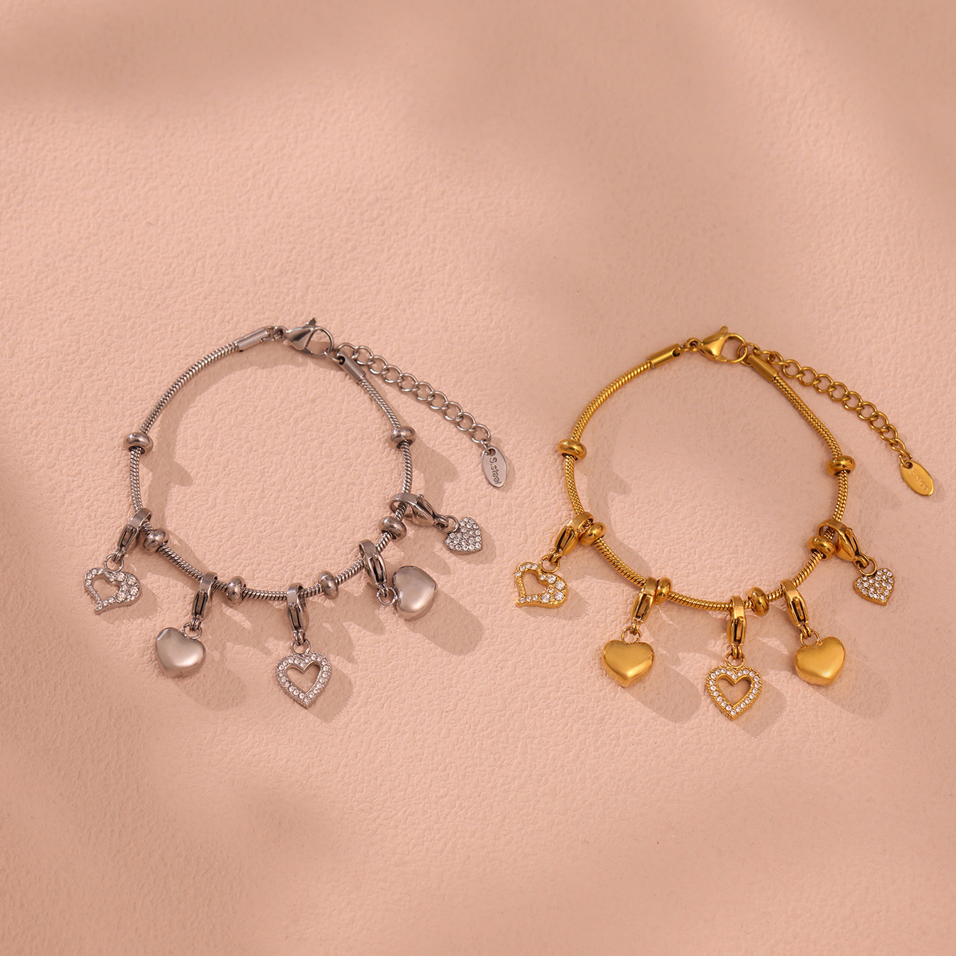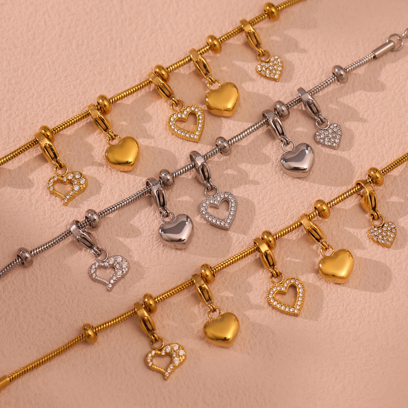Bracciale gioielli in acciaio inossidabile, 304 acciaio inox, stili diversi per la scelta & per la donna & con strass, dorato, Venduto da PC