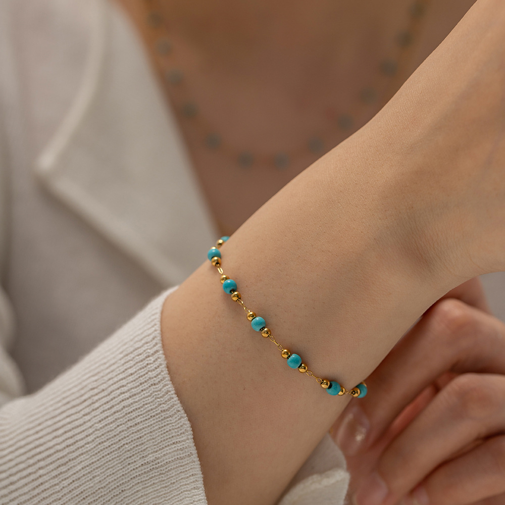 Bracciale gioielli in acciaio inossidabile, 304 acciaio inox, with turchese, placcato color oro, gioielli di moda & per la donna, Venduto da PC