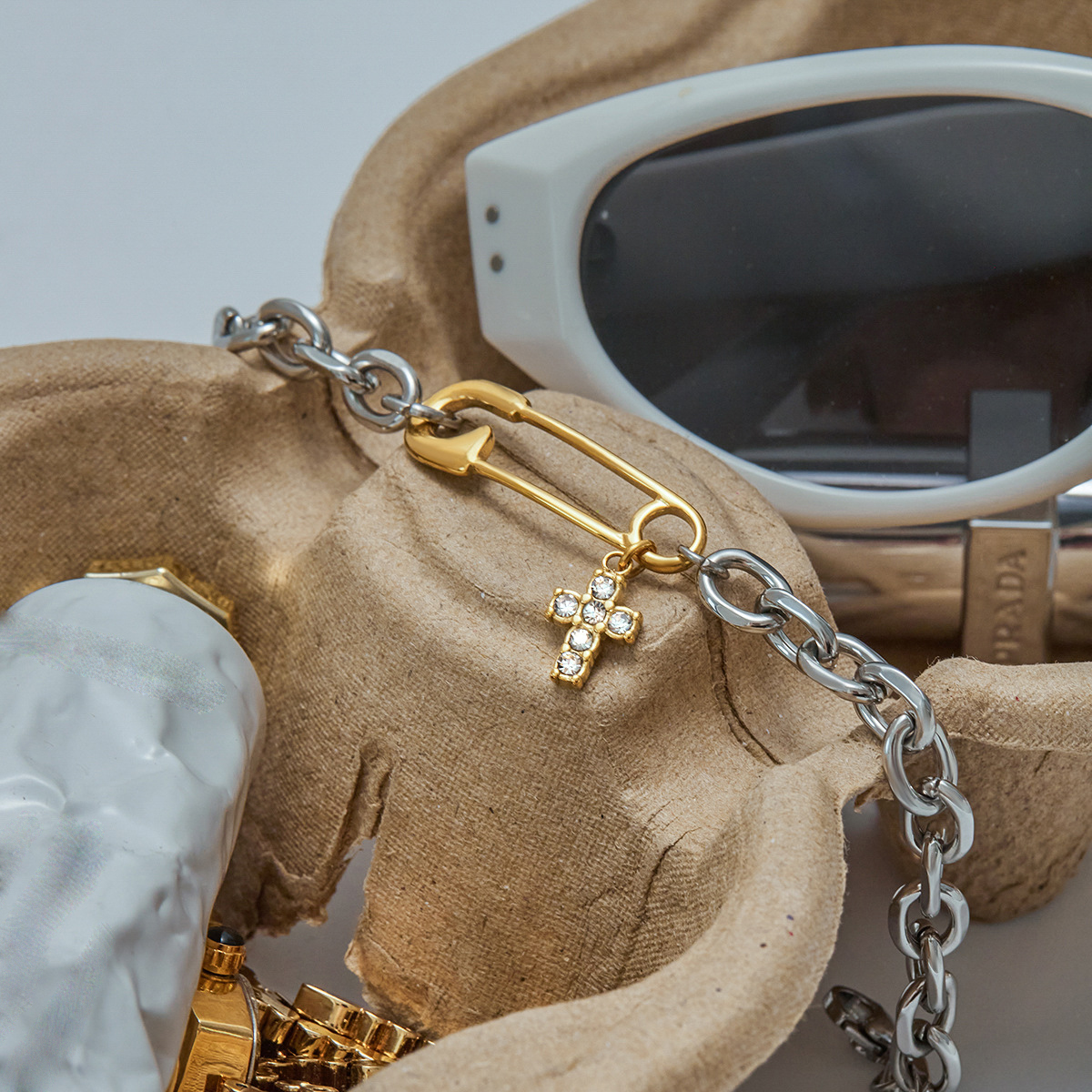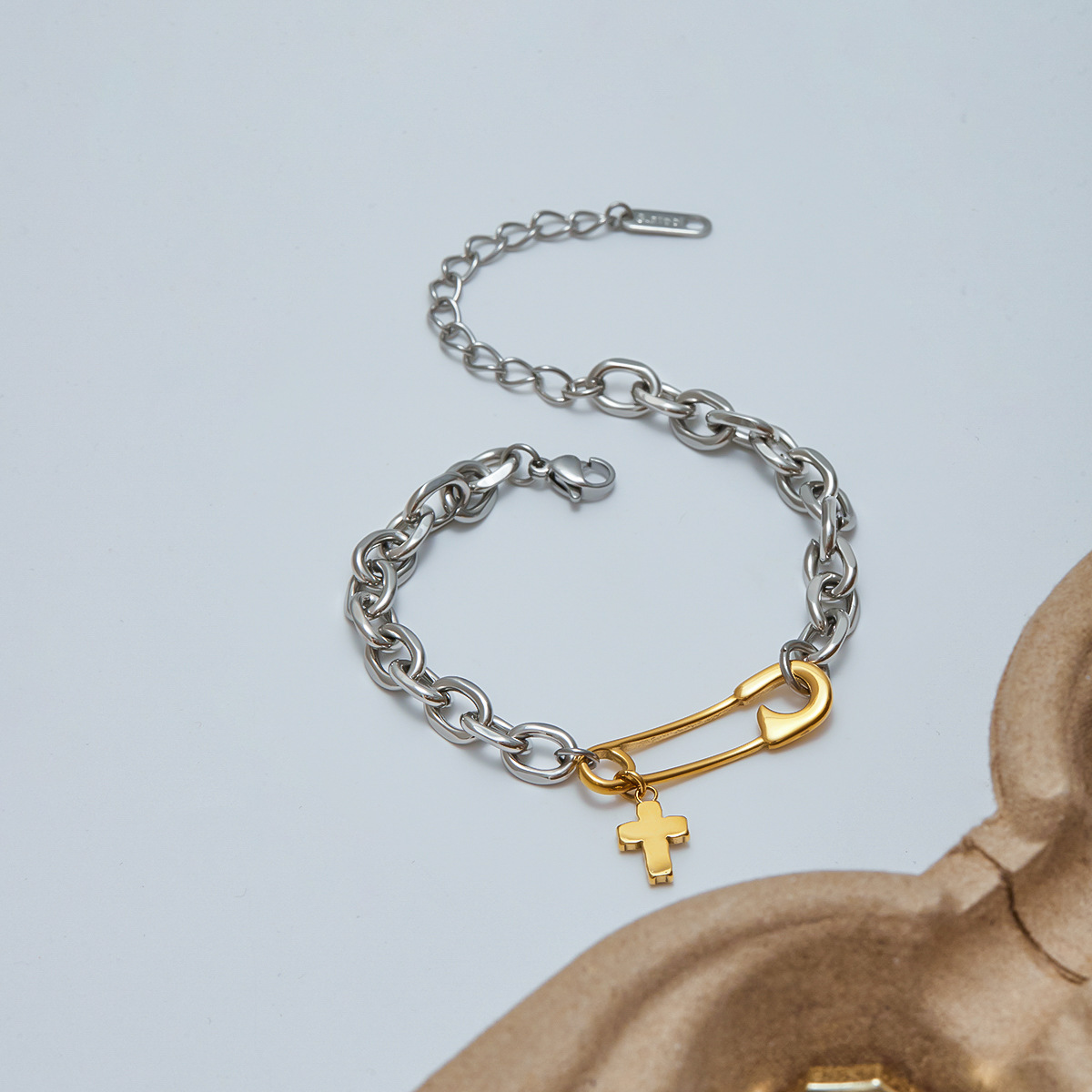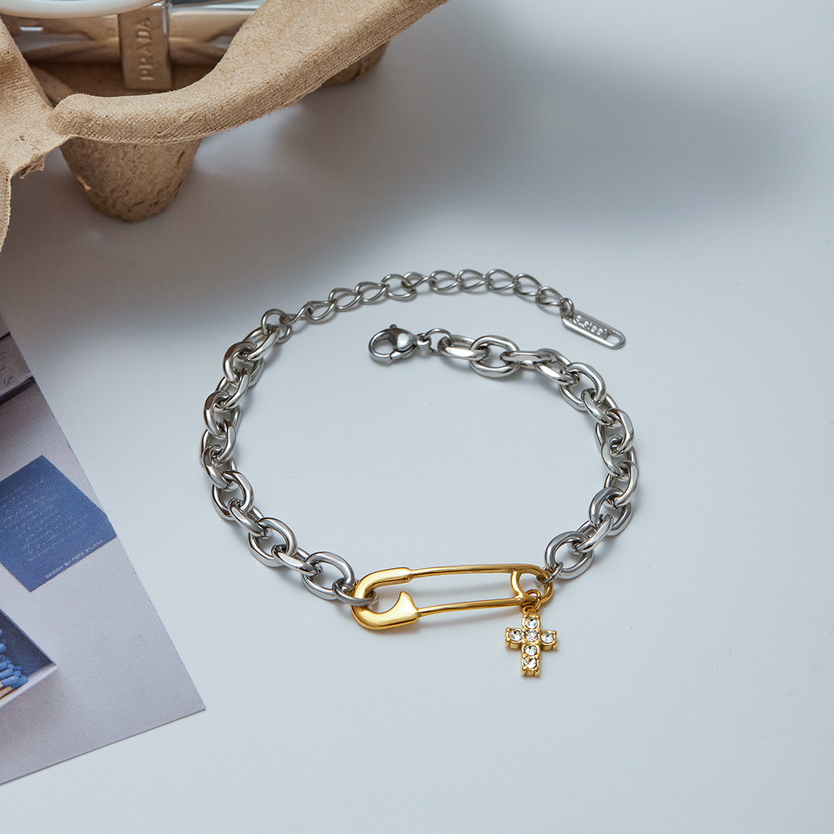 Bracciale gioielli in acciaio inossidabile, 304 acciaio inox, placcato, per la donna & con strass & bicolore & cavo, Venduto da PC