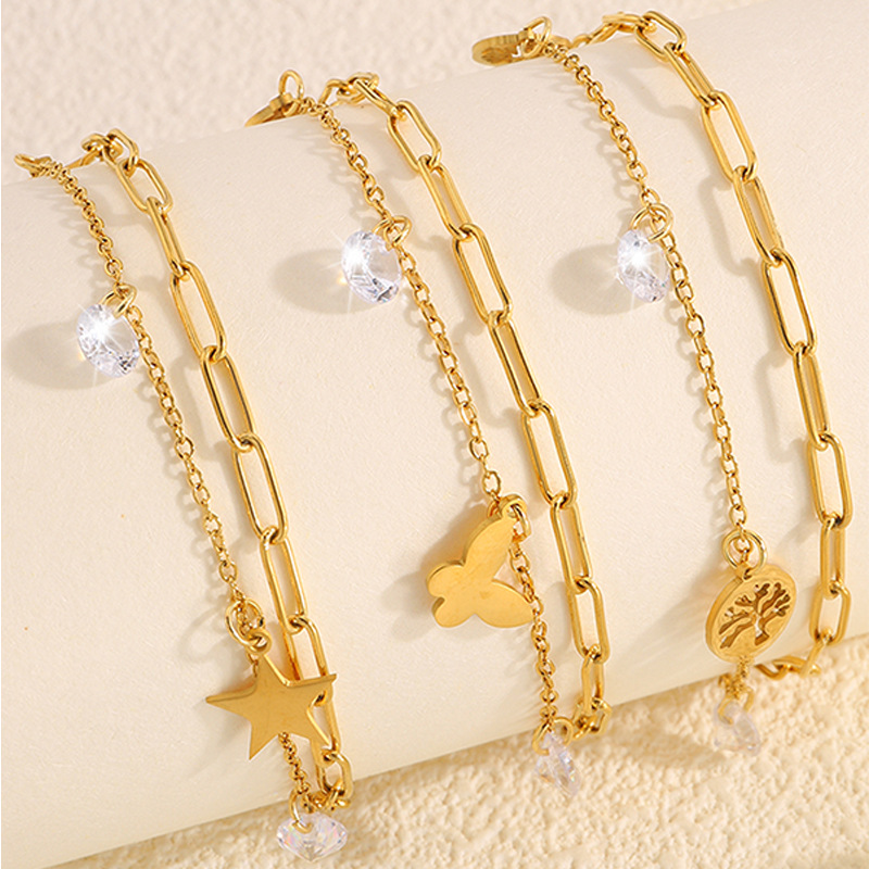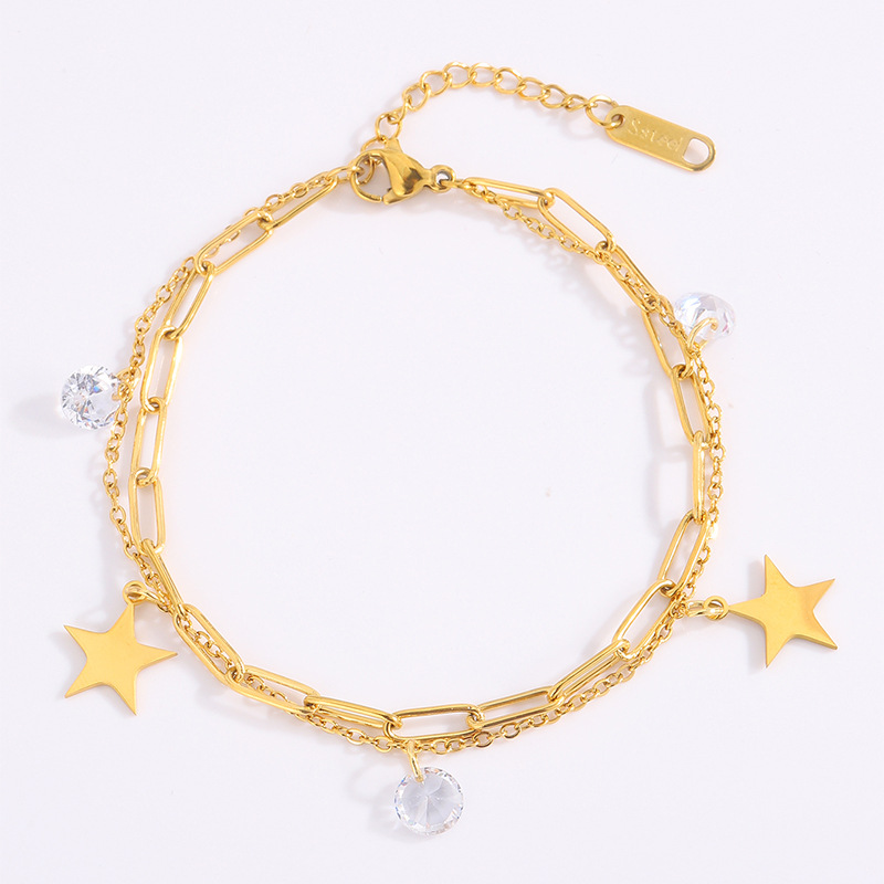 Bracciale gioielli in acciaio inossidabile, 304 acciaio inox, with cristallo, Doppio strato & stili diversi per la scelta & per la donna, dorato, Venduto da PC