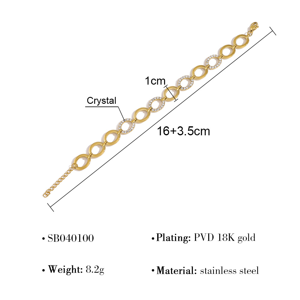 Bracciale gioielli in acciaio inossidabile, 304 acciaio inox, with cristallo, Placcato oro 18K, stili diversi per la scelta & per la donna & cavo, Venduto da PC