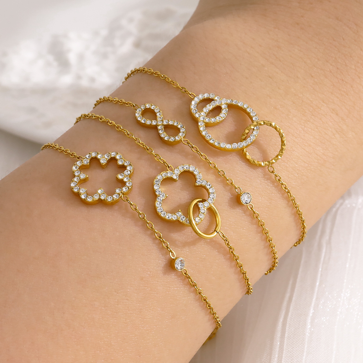 Bracciale gioielli in acciaio inossidabile, 304 acciaio inox, stili diversi per la scelta & per la donna & con strass, dorato, Venduto da PC