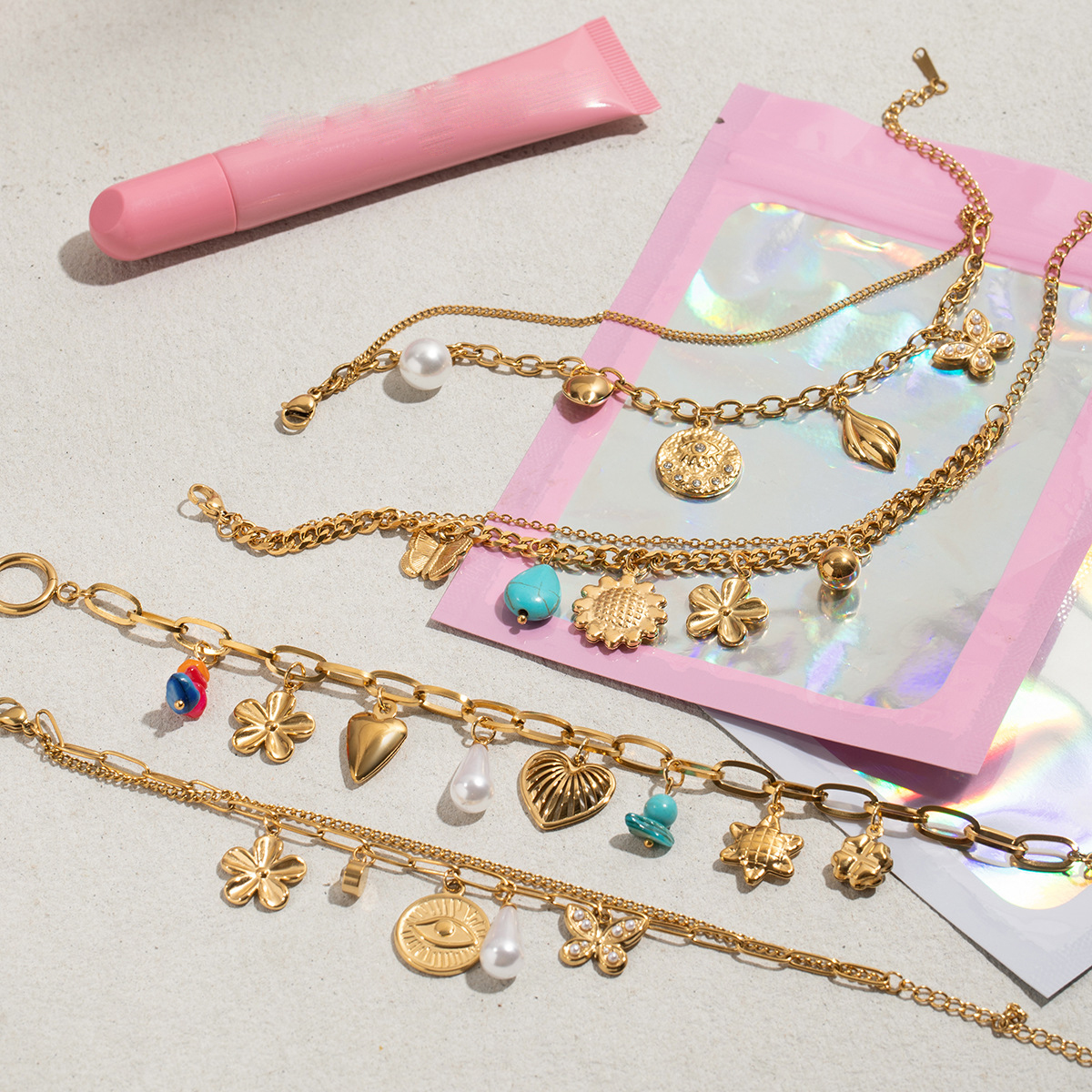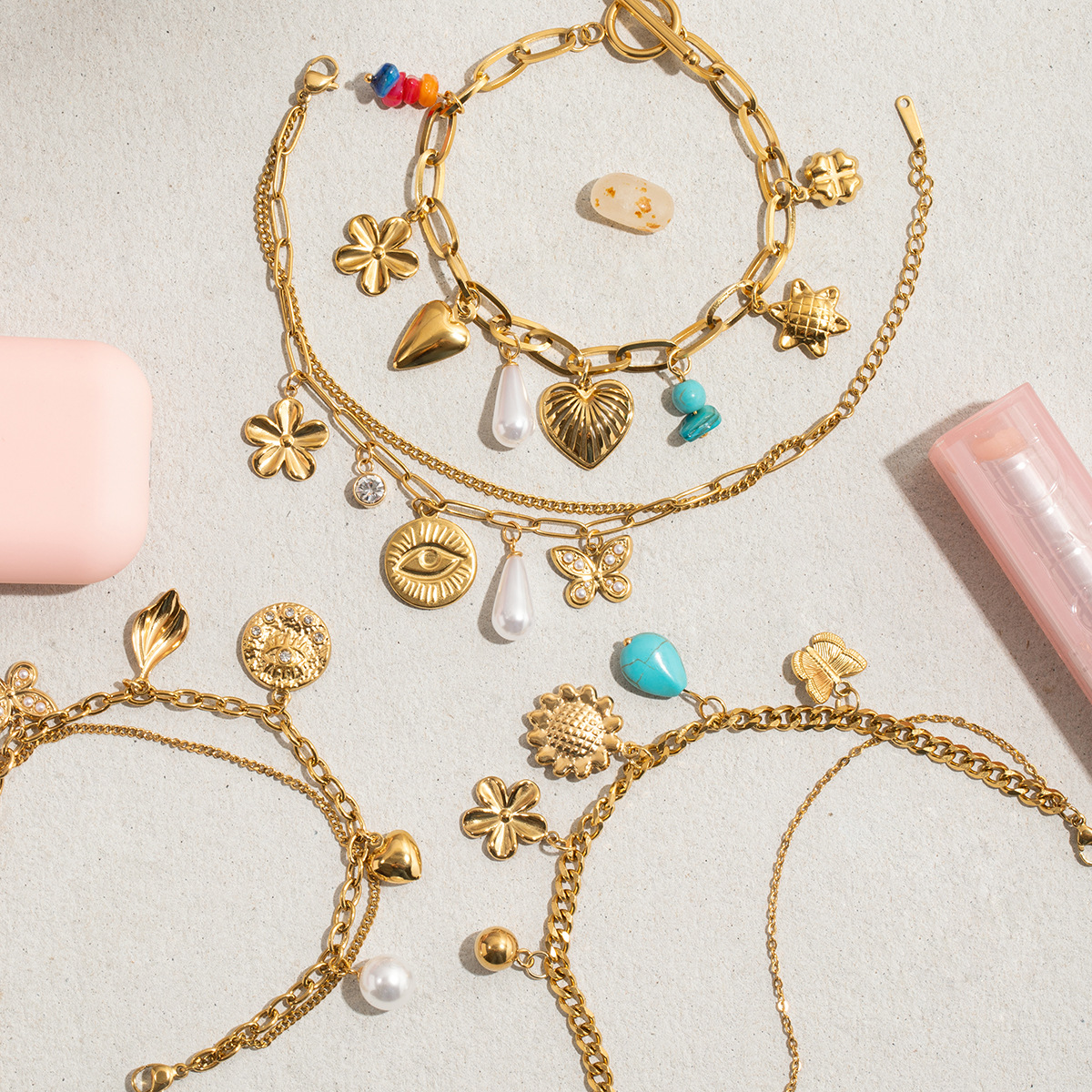 Bracciale gioielli in acciaio inossidabile, 304 acciaio inox, with perla in plastica, placcato, Doppio strato & stili diversi per la scelta & per la donna & con strass, dorato, Venduto da PC