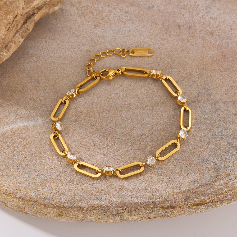 Bracciale gioielli in acciaio inossidabile, 304 acciaio inox, with cubico zircone, placcato, gioielli di moda & per la donna, dorato, Venduto da PC